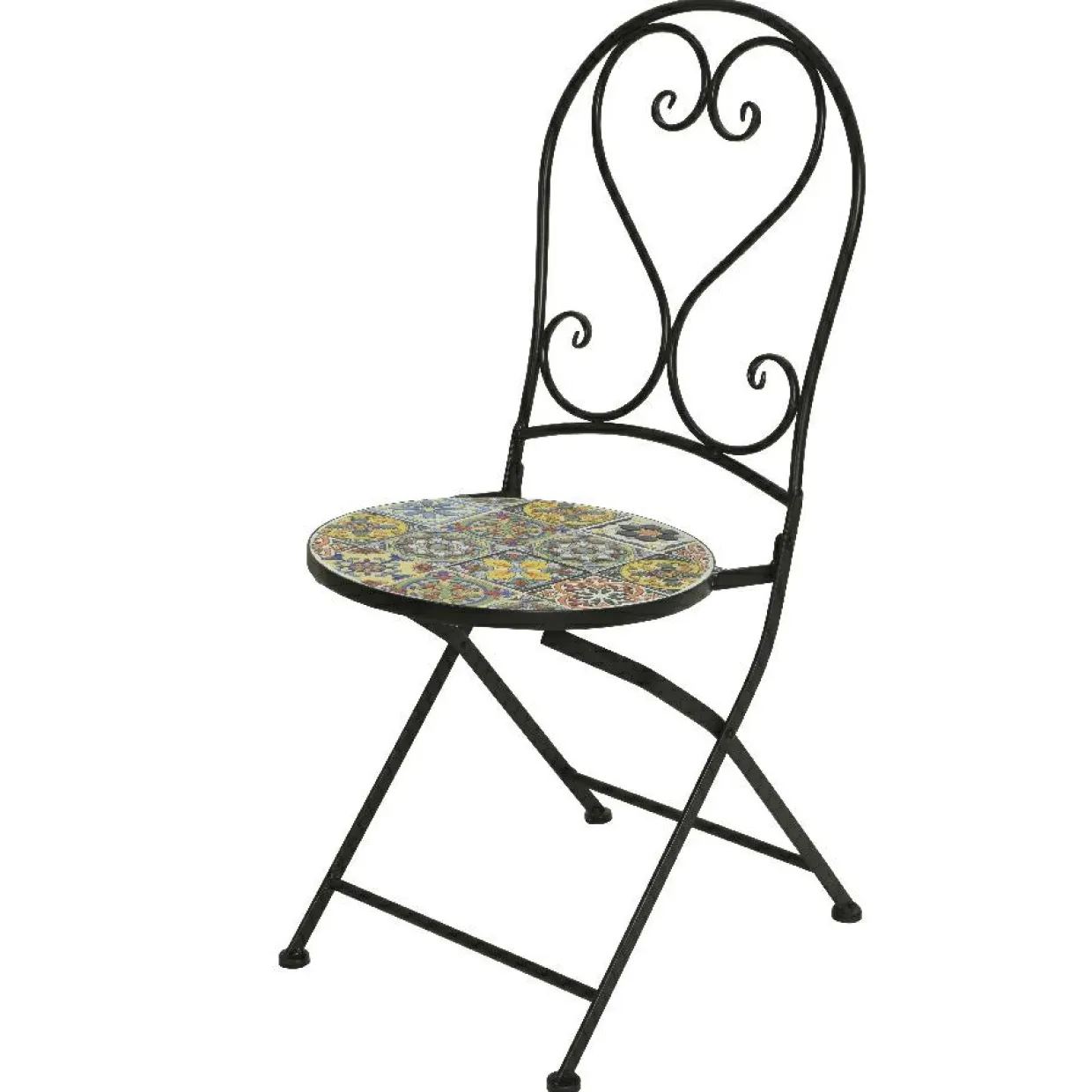 Couleur : structure noire et assise en carreaux de céramique mutlicolores.