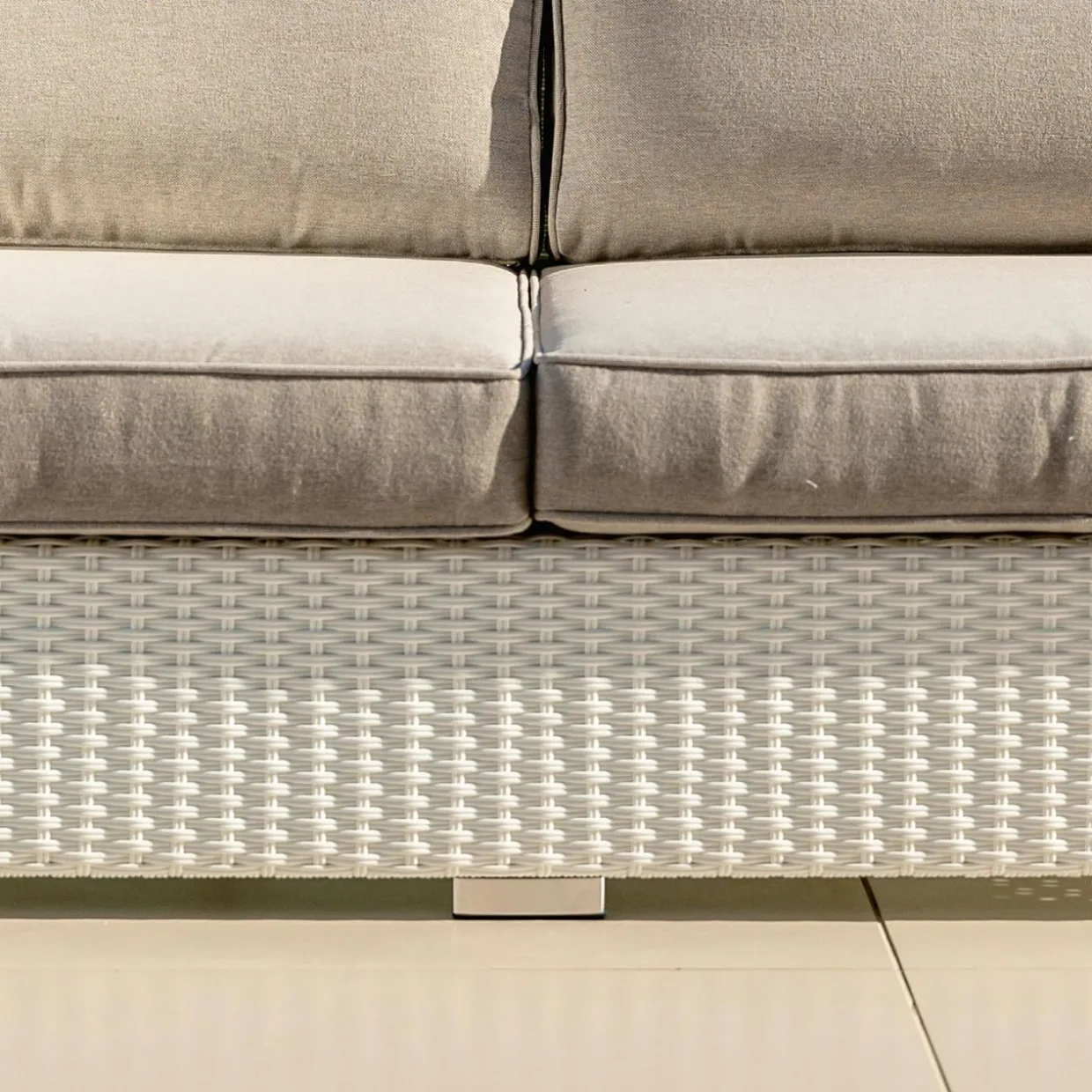 Chauffeuse de jardin en résine tressée 2 places Palma Blanc et taupe