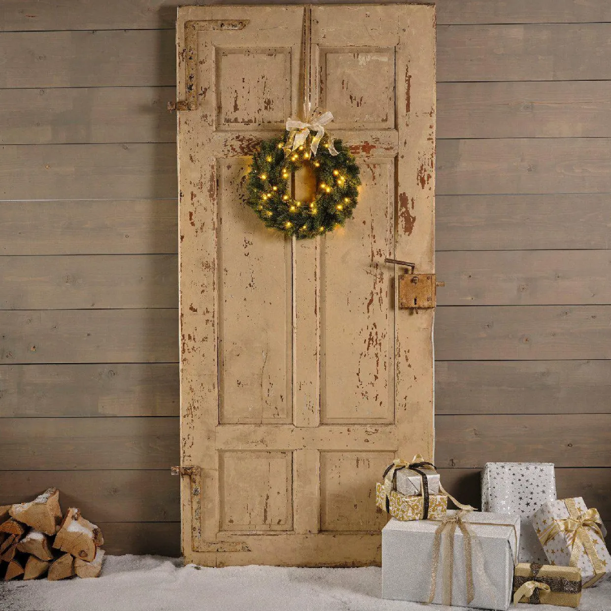 Une belle façon d’accueillir vos invités en installant cette couronne lumineuse à votre porte.