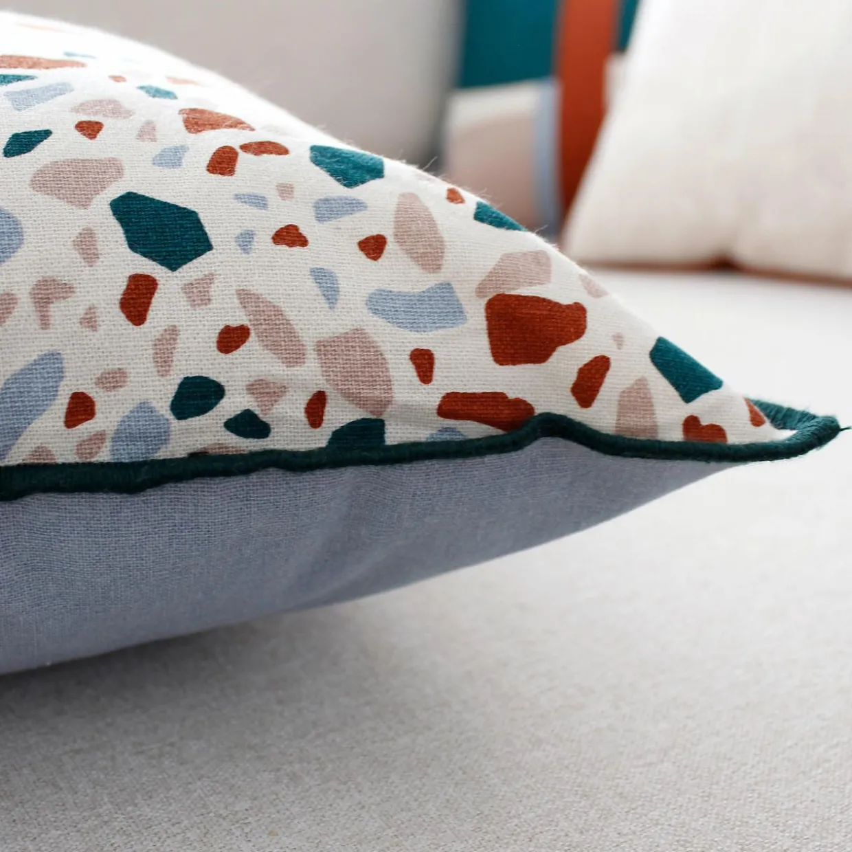Imprimé : coussin à motif graphique au recto et uni au verso.