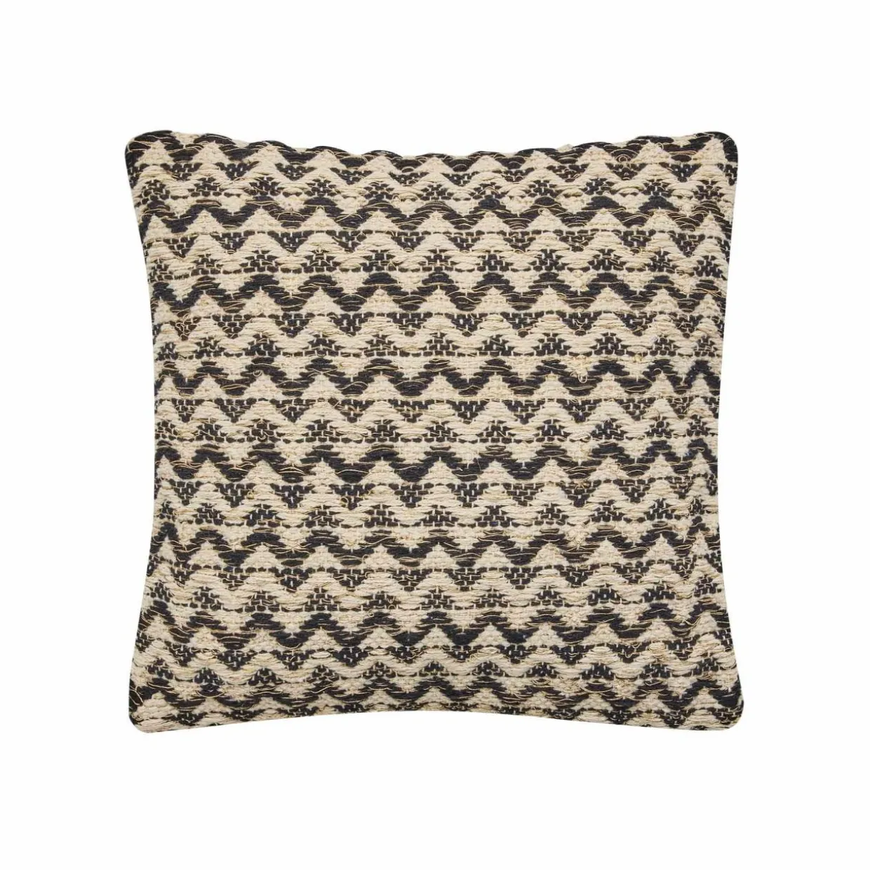 Imprimé : coussin à motif ethnique métallisé au recto et uni au verso.