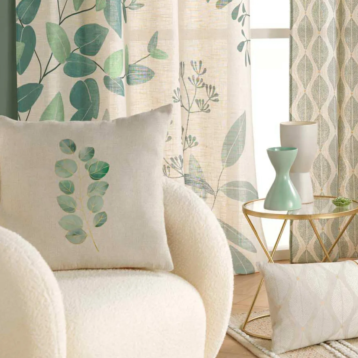 Le coussin Eucalys apporte une touche de nature à votre intérieur avec son motif feuillage vert sur fond écru. Son effet lin ajoute une note de douceur et d’élégance à votre décoration.