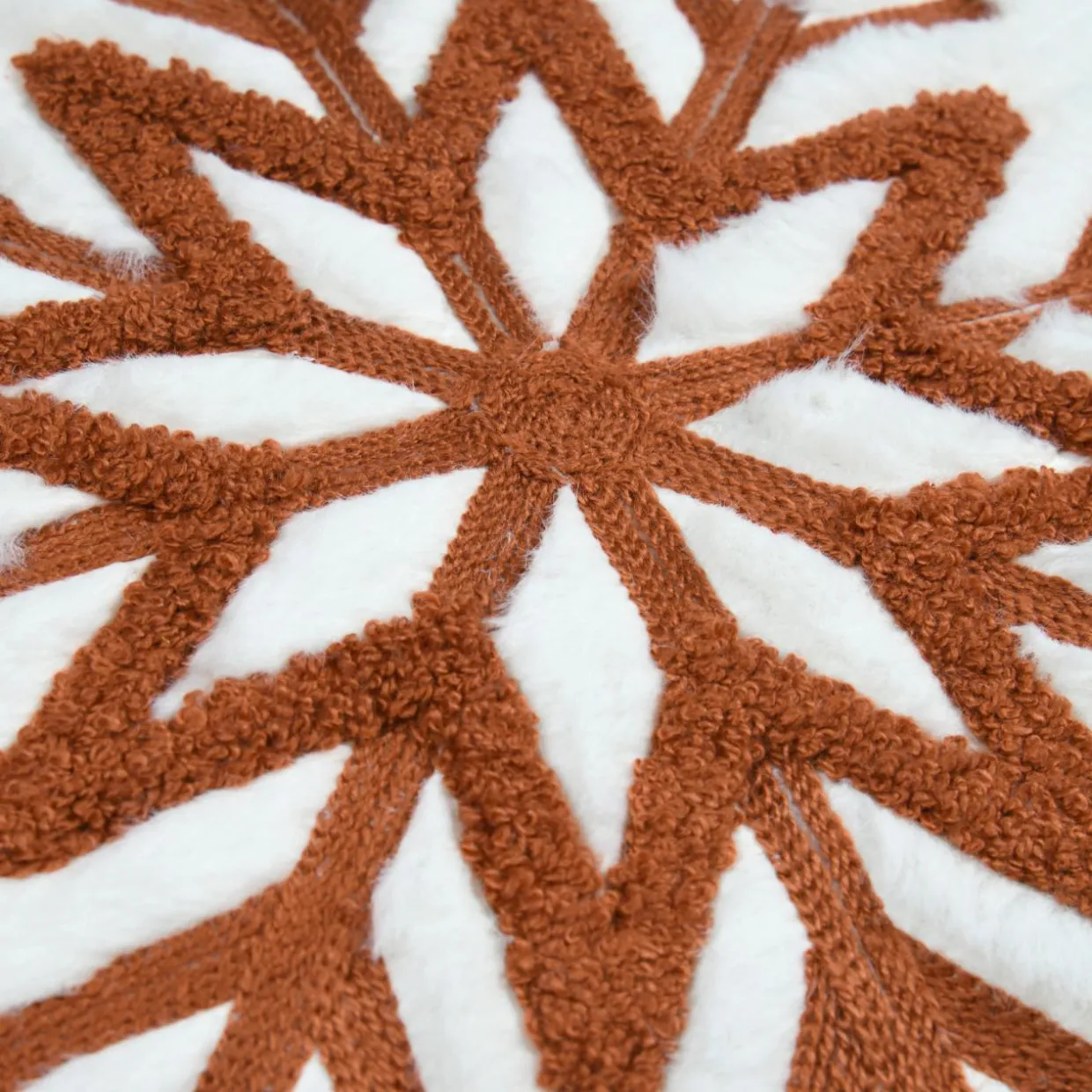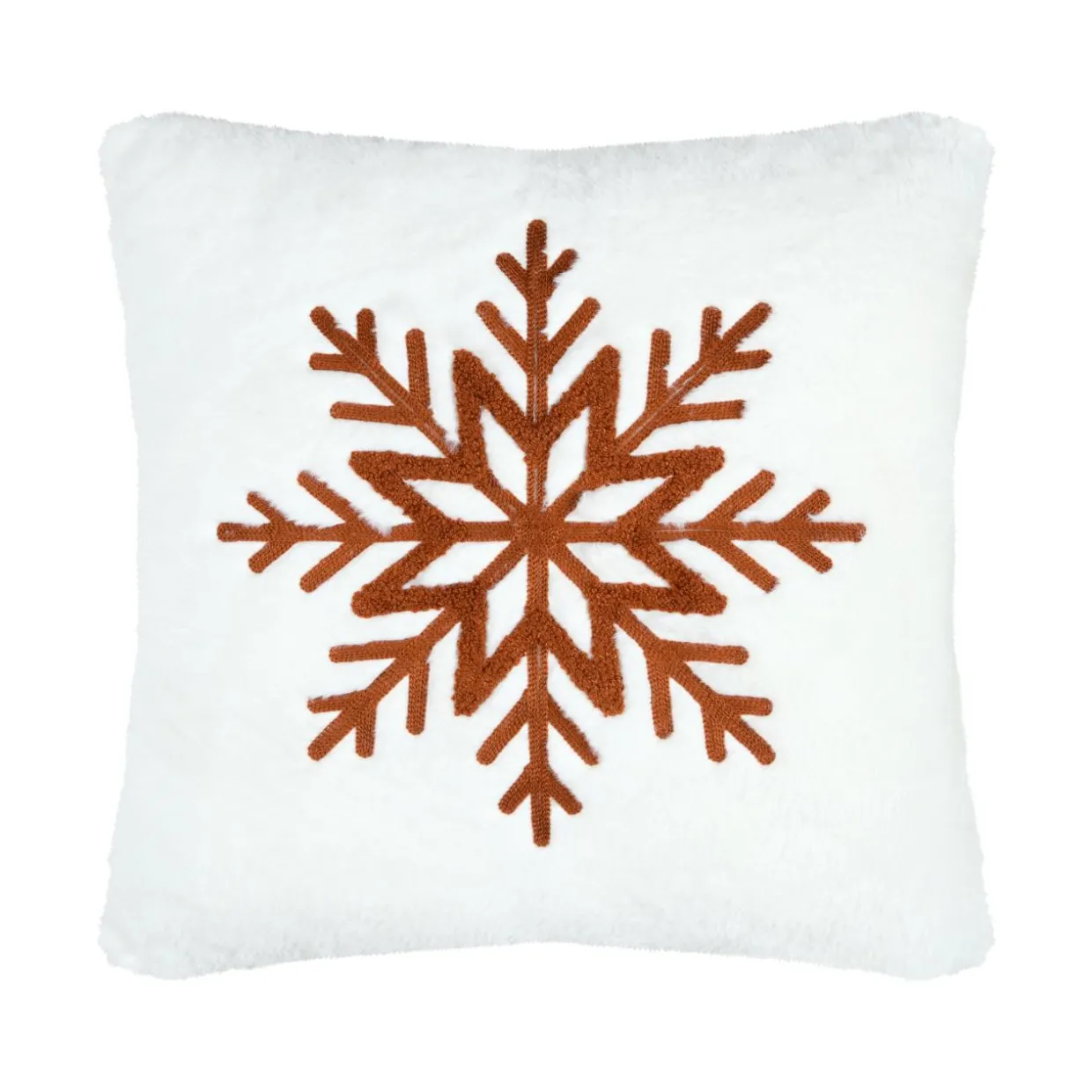 Imprimé : coussin à motif flocon au recto et uni au verso.