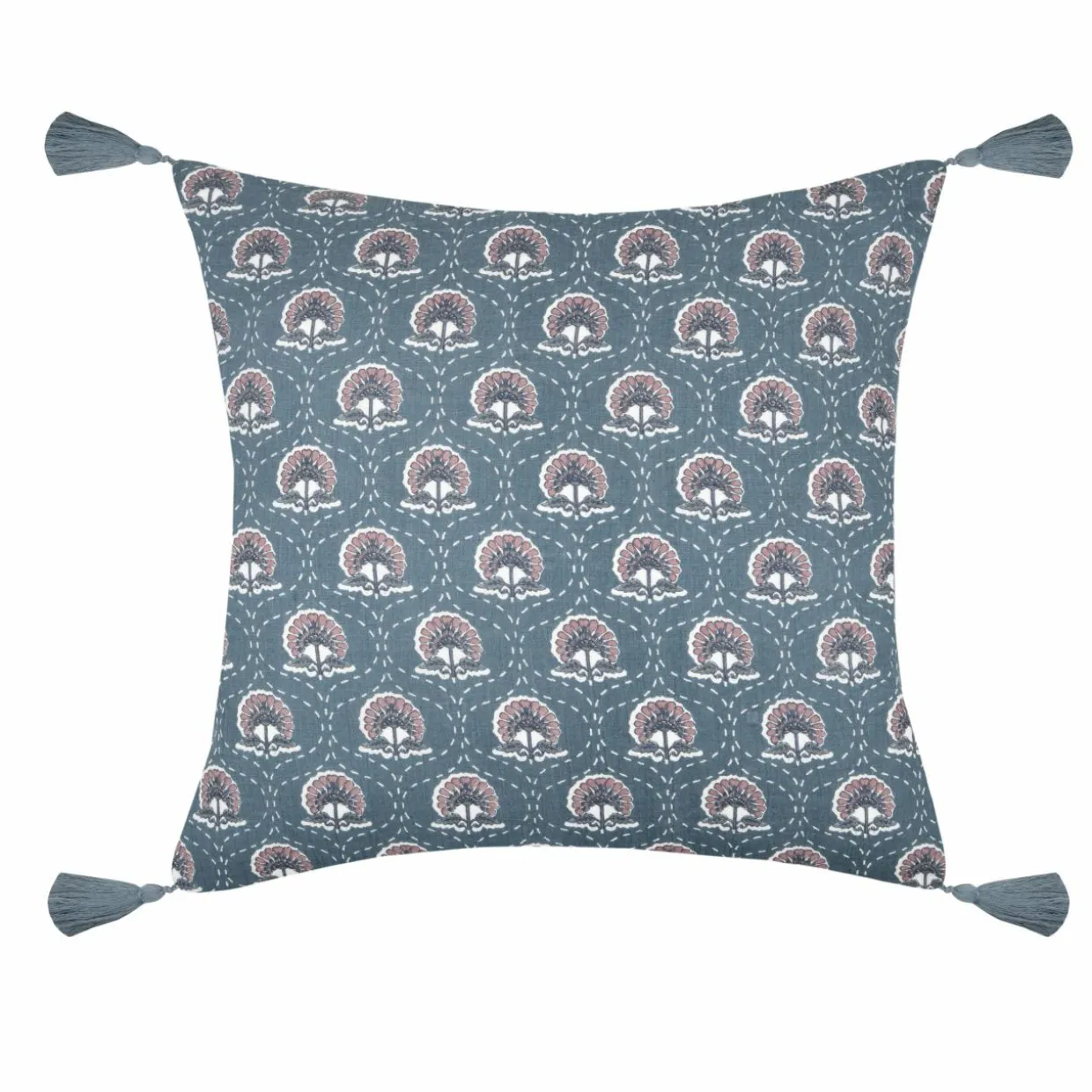 Imprimé : coussin à motif végétal au recto et uni au verso.