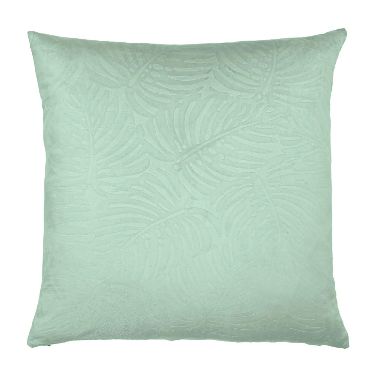 Imprimé : coussin à motif feuillage en relief au recto et uni au verso.