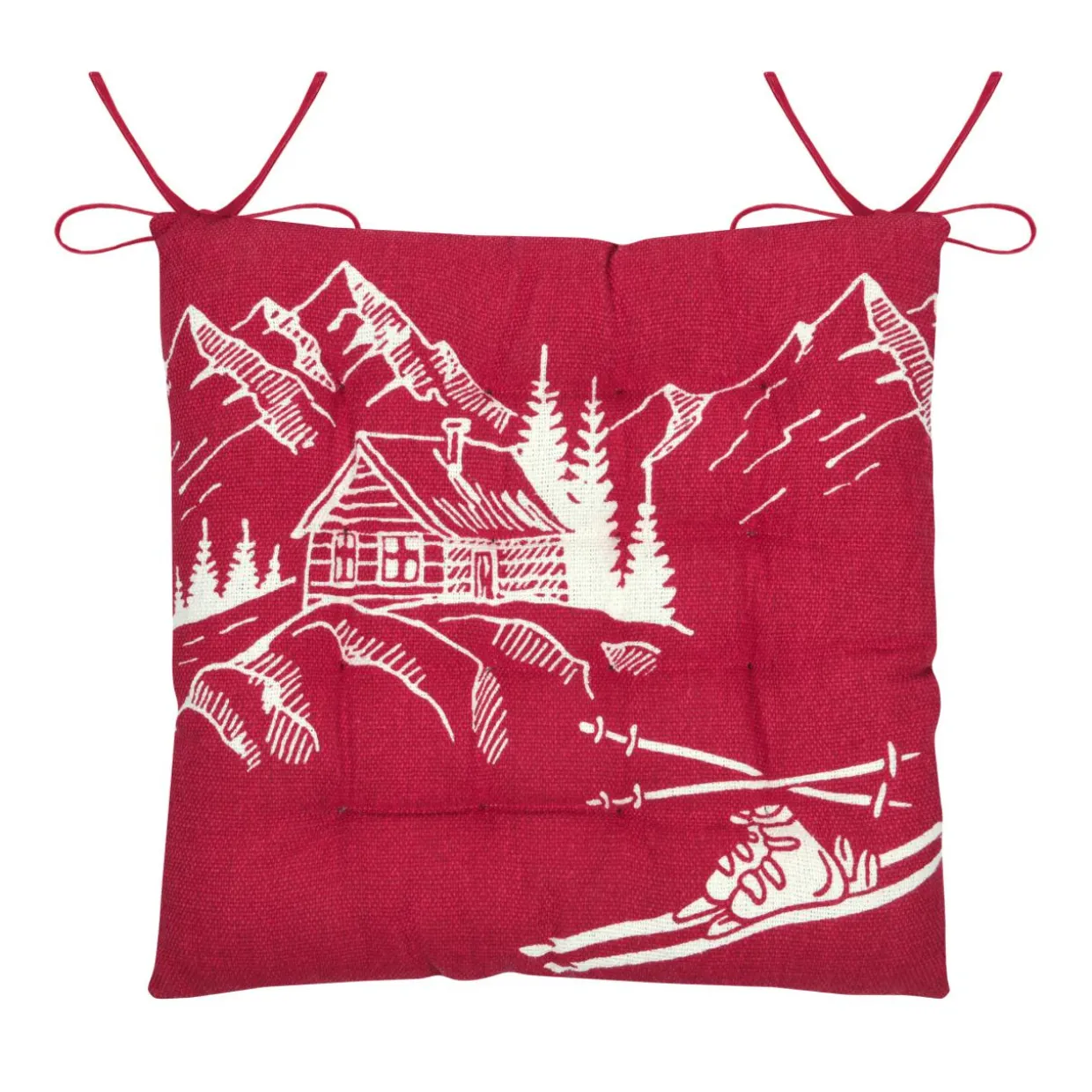 Imprimé : motif chalet de montagne au recto et uni au verso.