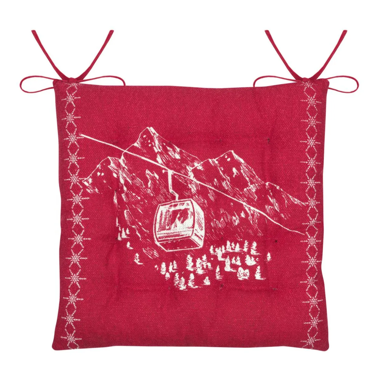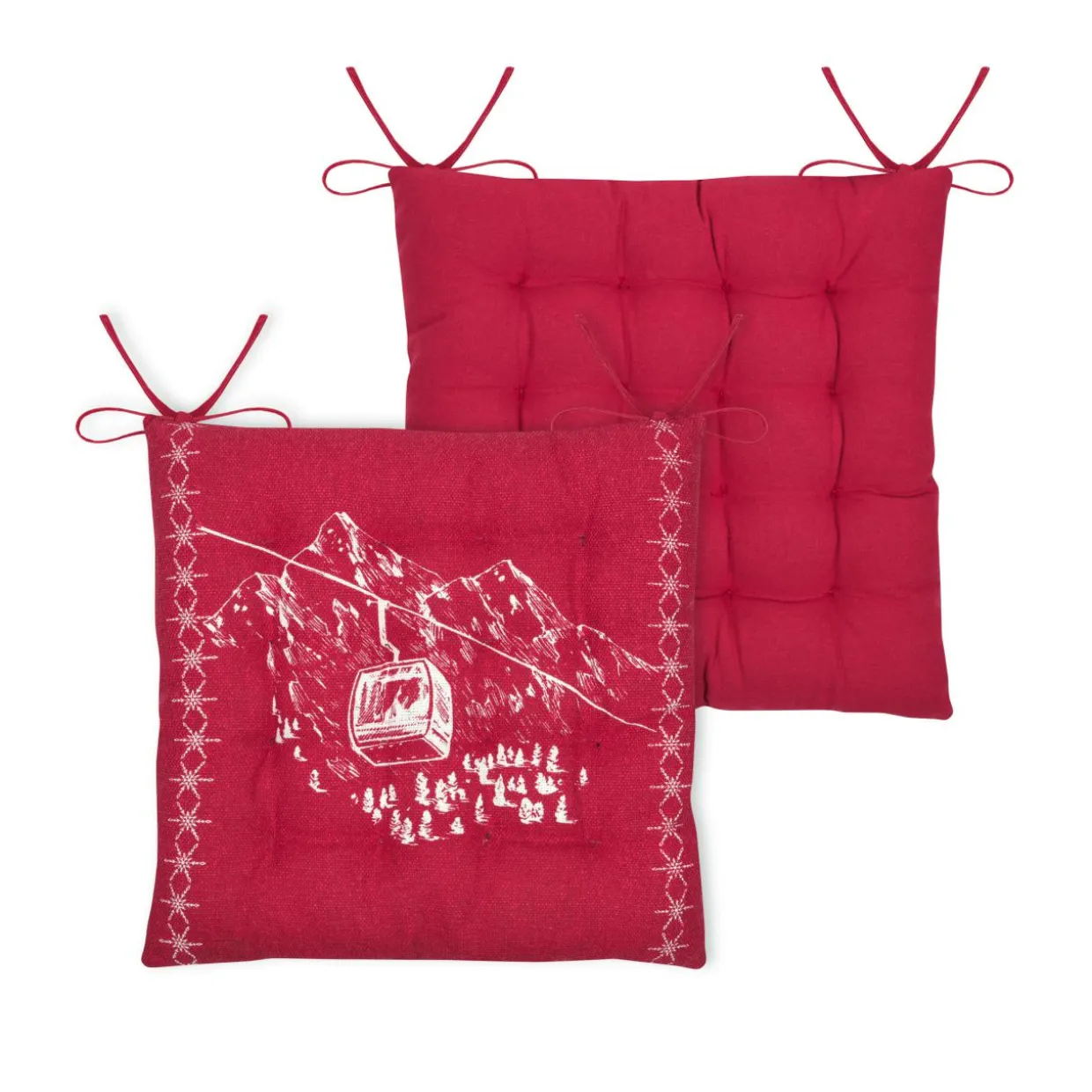 Imprimé : motif télécabine au recto et uni au verso.