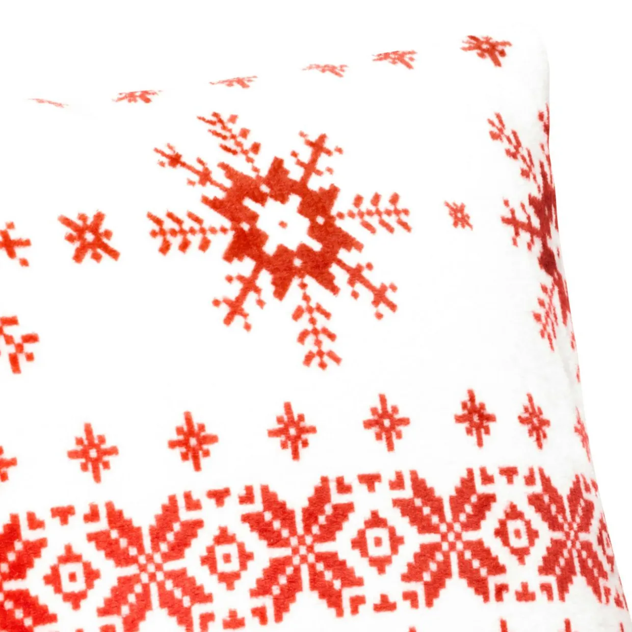 Imprimé : Coussin à motif flocons de neige au recto et verso.