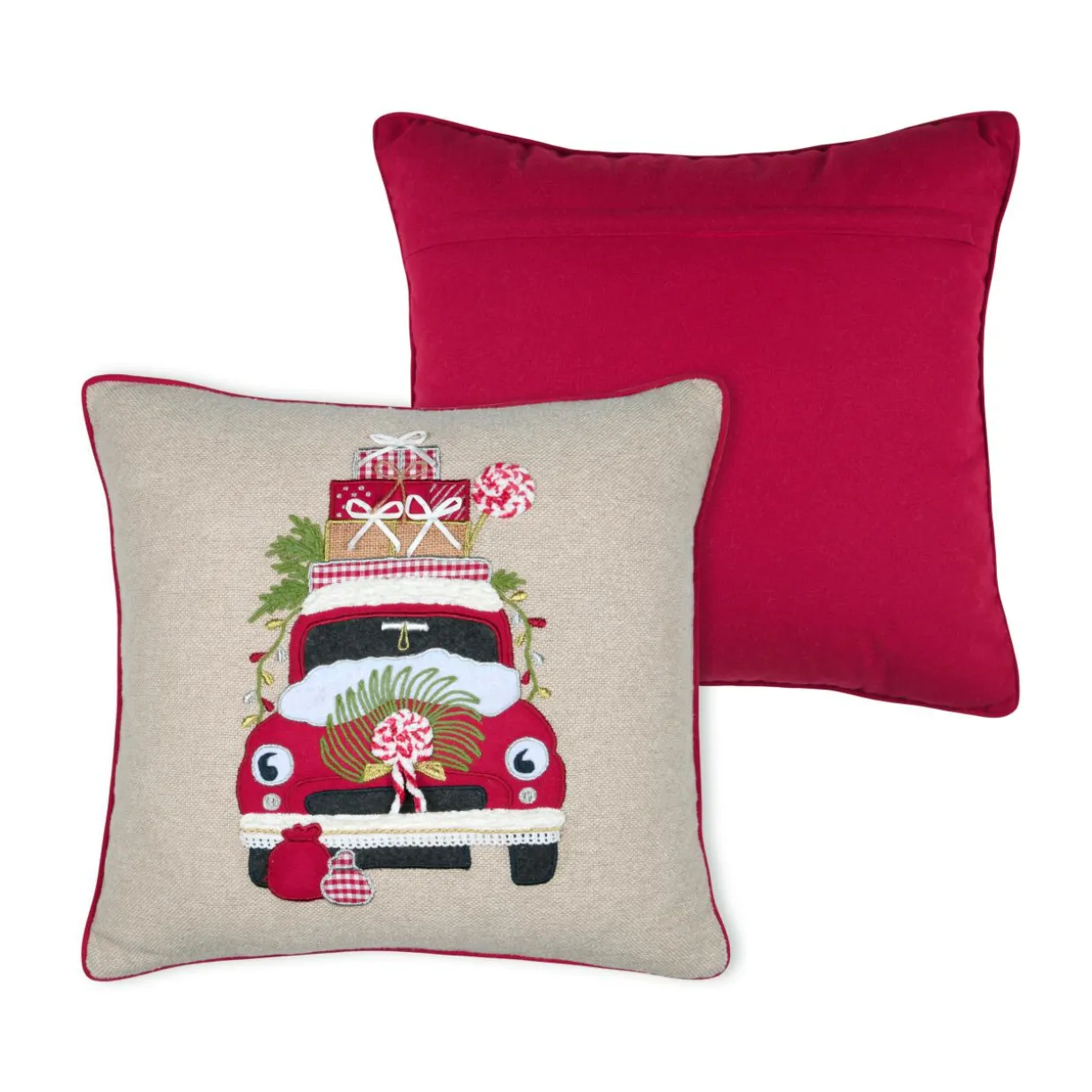 Invitez la magie de Noël dans votre décoration avec ce coussin au look vintage. Son motif de voiture de Noël brodé apporte une touche festive et rétro à votre intérieur.