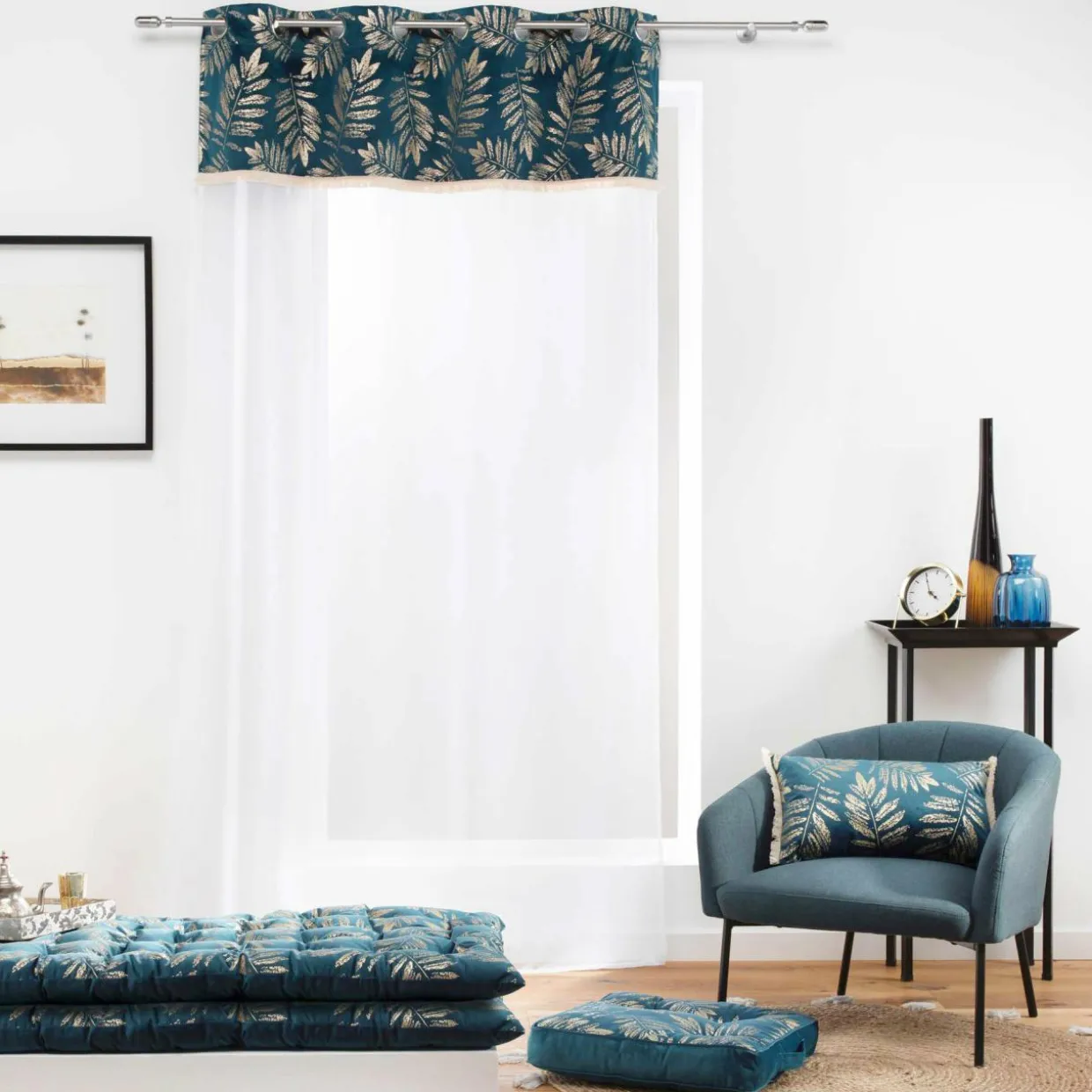 Couleur : fond bleu et motif or.
