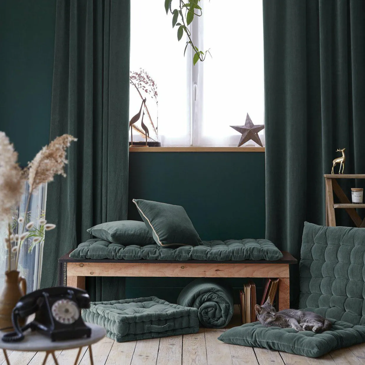 Matière : housse 100 % coton effet velours et garnissage 100 % fibres diverses de coton.