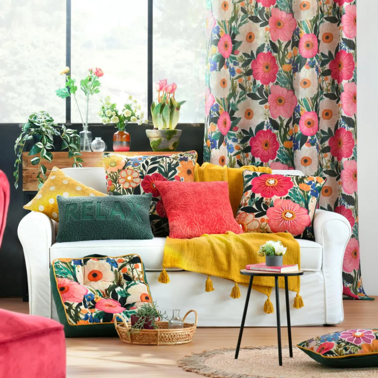 Imprimé : coussin à motif floral.