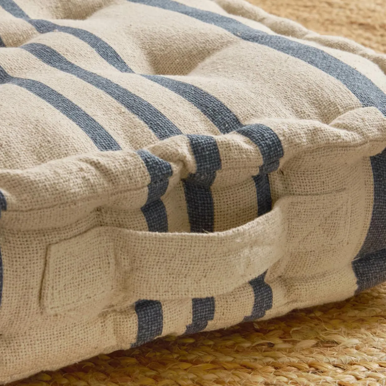 Un petit air marin s’invite dans votre déco estivale avec ce coussin de sol en coton de la gamme Nautira, chic et raffiné.