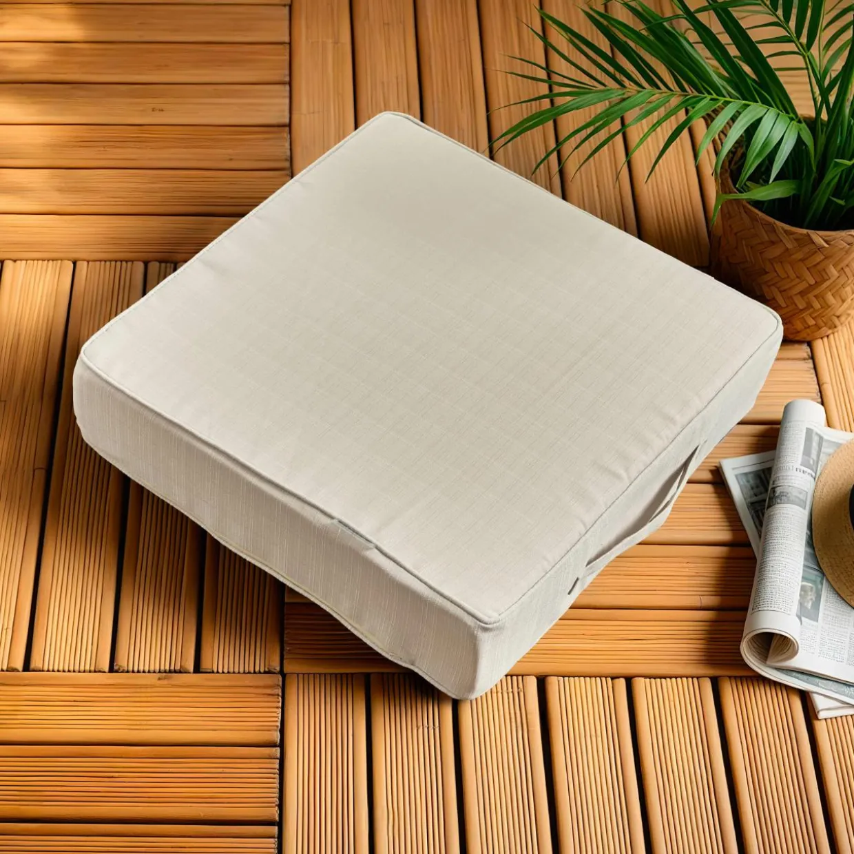 Ce coussin de sol arbore un effet matière des plus originaux, il s’intégrera harmonieusement à votre terrasse.