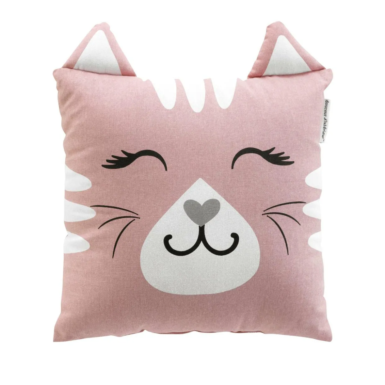 Imprimé : coussin à motif chat au recto et uni au verso.