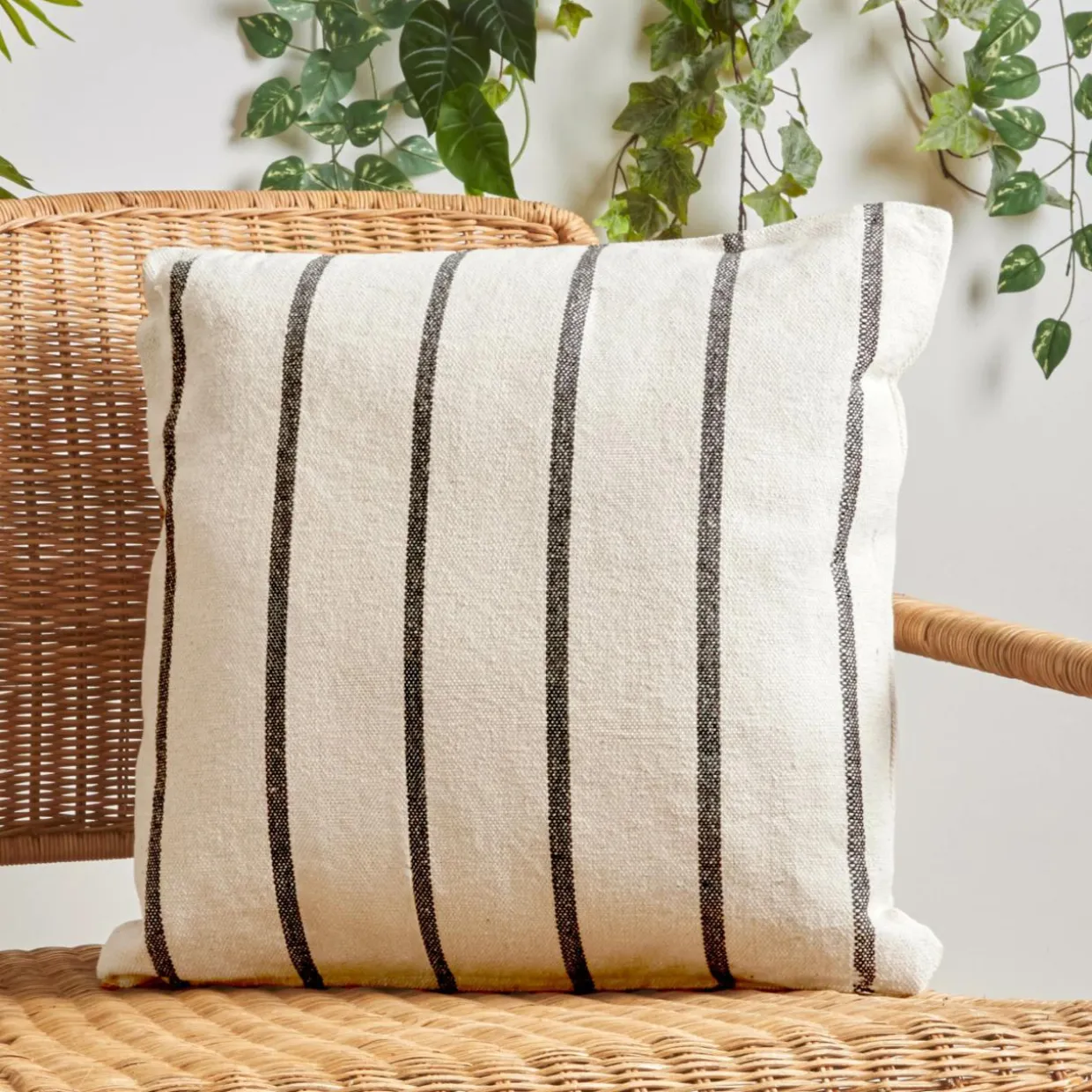 Imprimé : coussin à rayures au recto/verso.