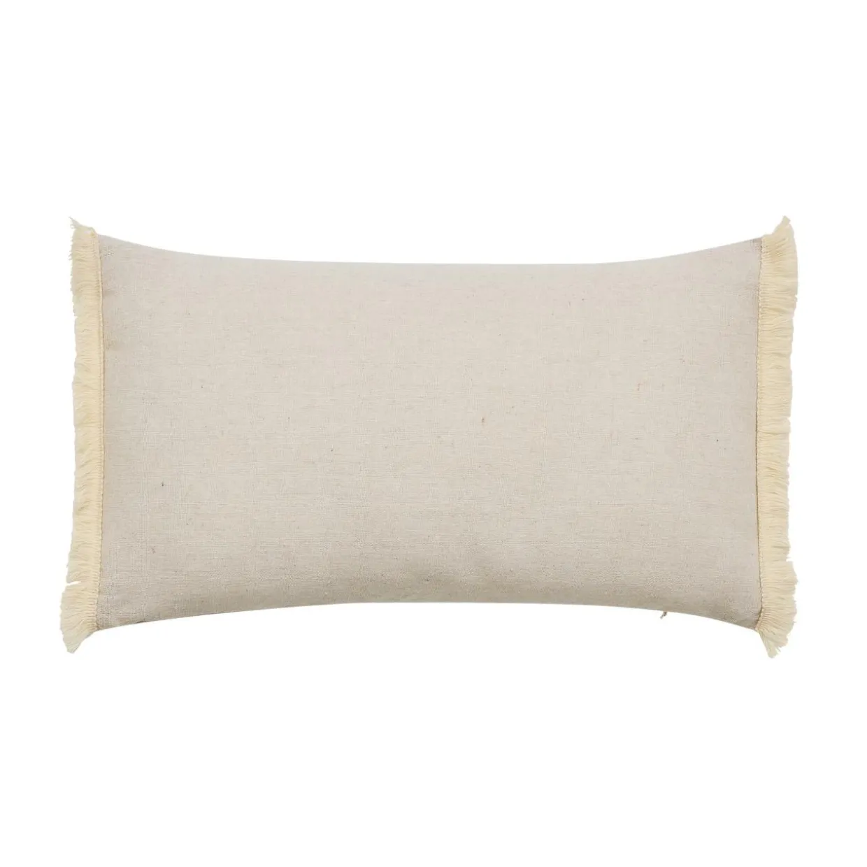 Ce coussin rectangulaire fait voyager votre décor, avec ses franges au style naturel.