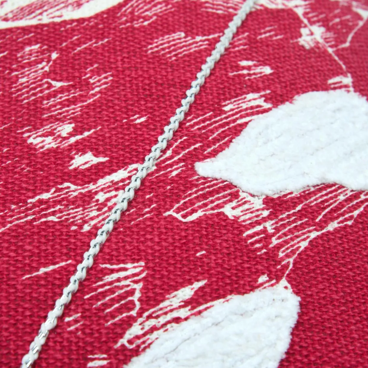 Couleur : rouge, avec des touches d’écru et de gris.