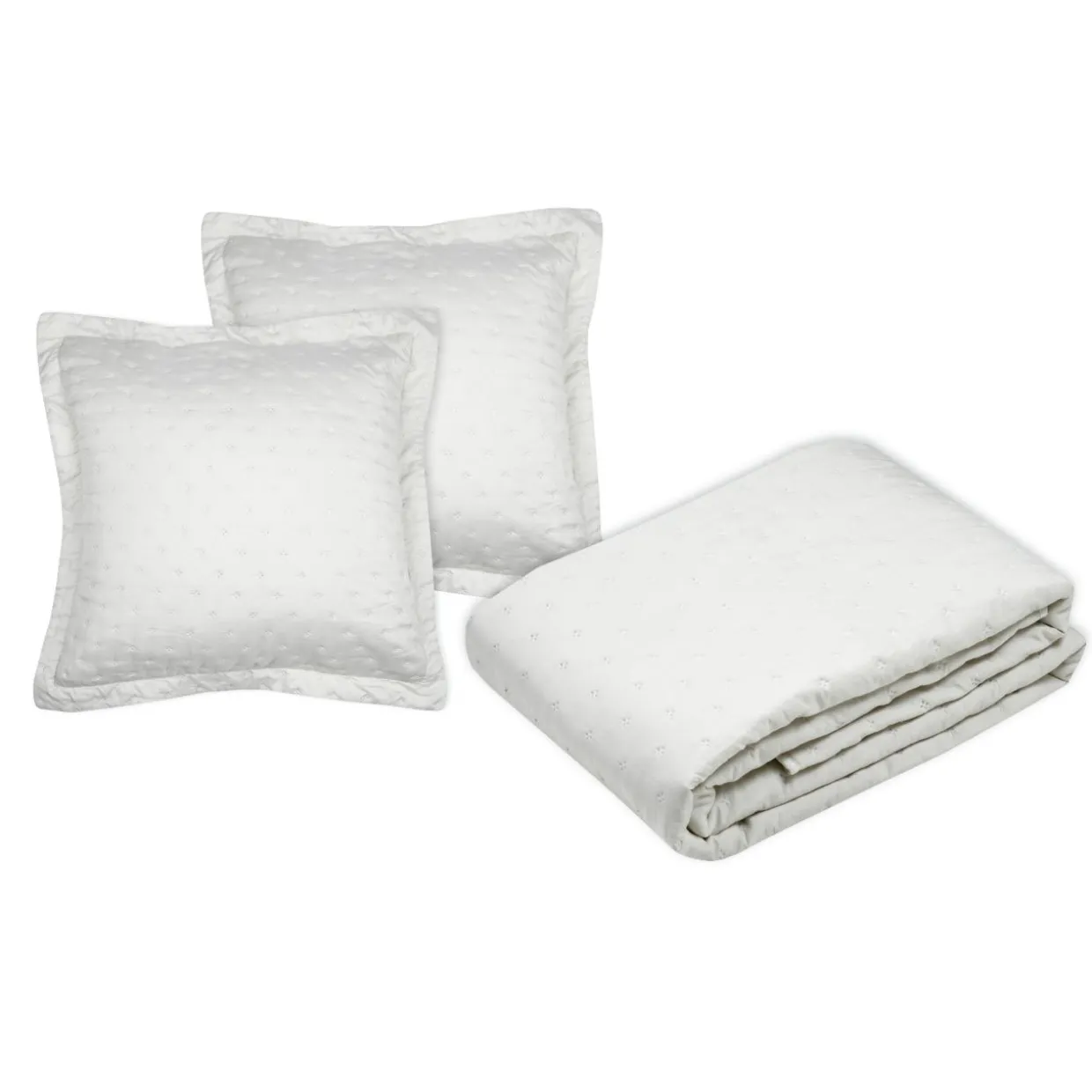 Dimensions : couvre-lit 260 x 240 cm, taies d’oreiller 65 x 65 cm.