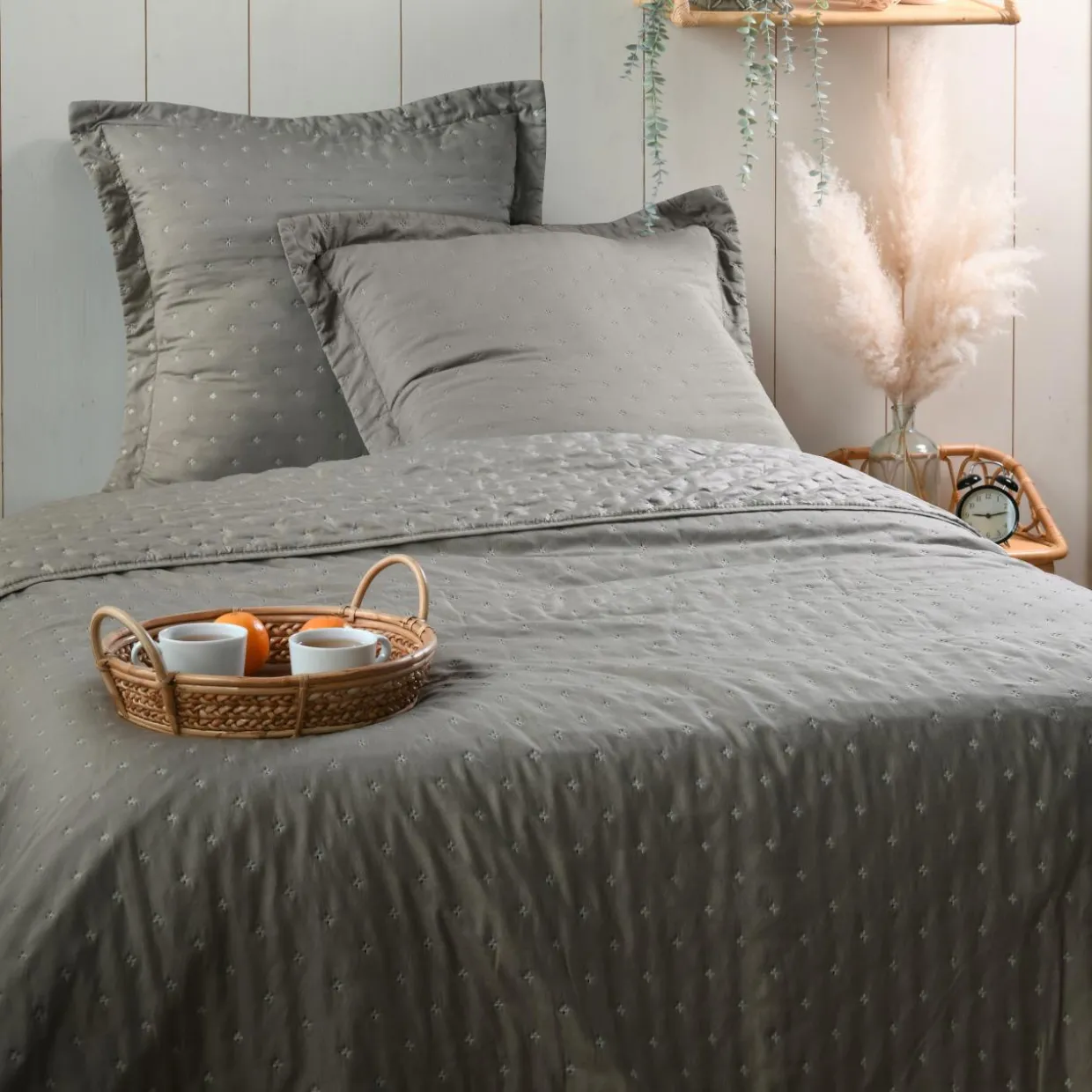 Imaginez-vous enveloppé dans ce couvre-lit matelassé Cléo Taupe, qui transformera votre chambre en un cocon de douceur et d’élégance. Son toucher délicat et sa couleur apaisante invitent à la détente et au bien-être. Un véritable havre de paix pour vos nuits.