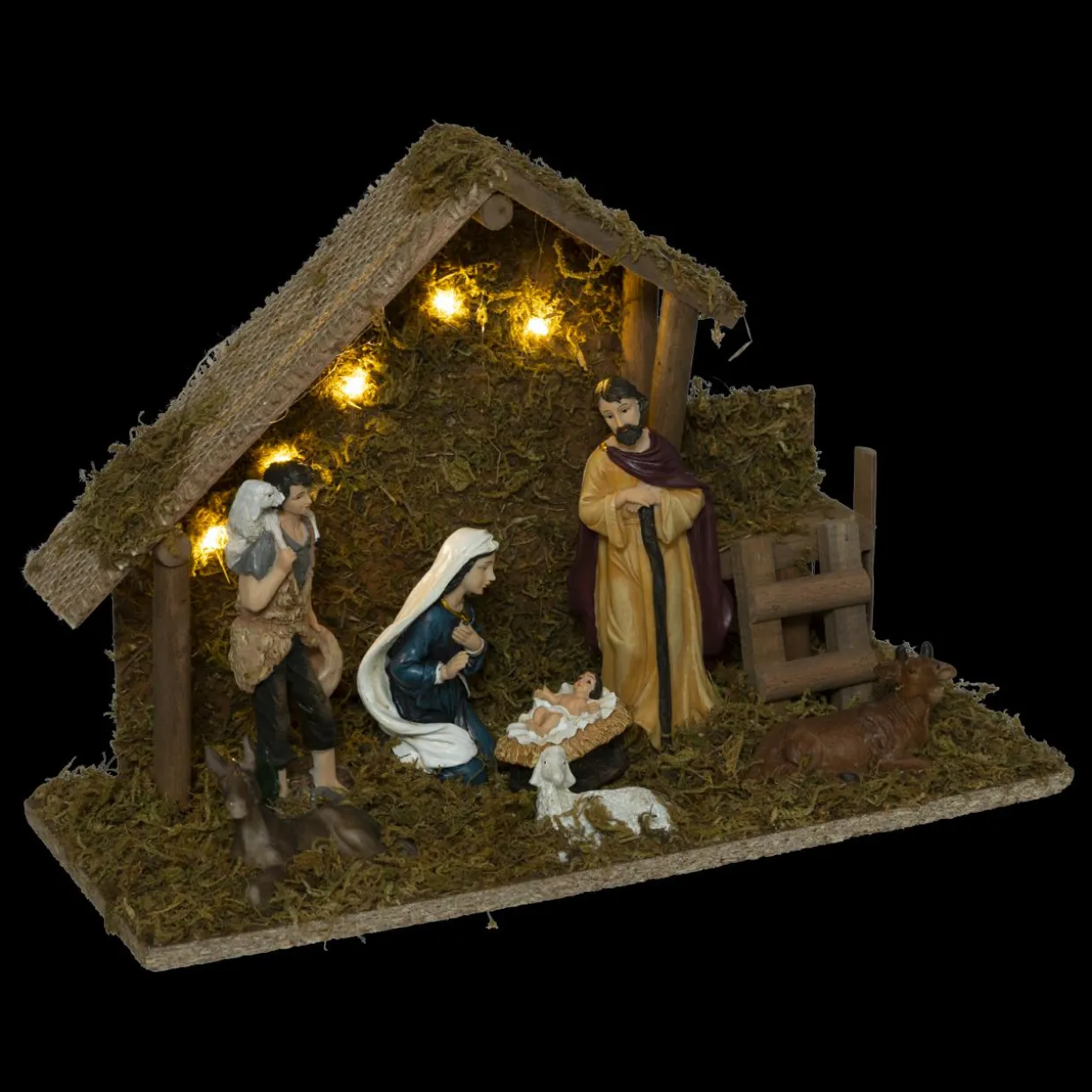 Fonctionnement : fonctionne avec 2 piles LR6 (non fournies). Possède 7 Led. Les santons sont collés, sauf le petit Jesus.