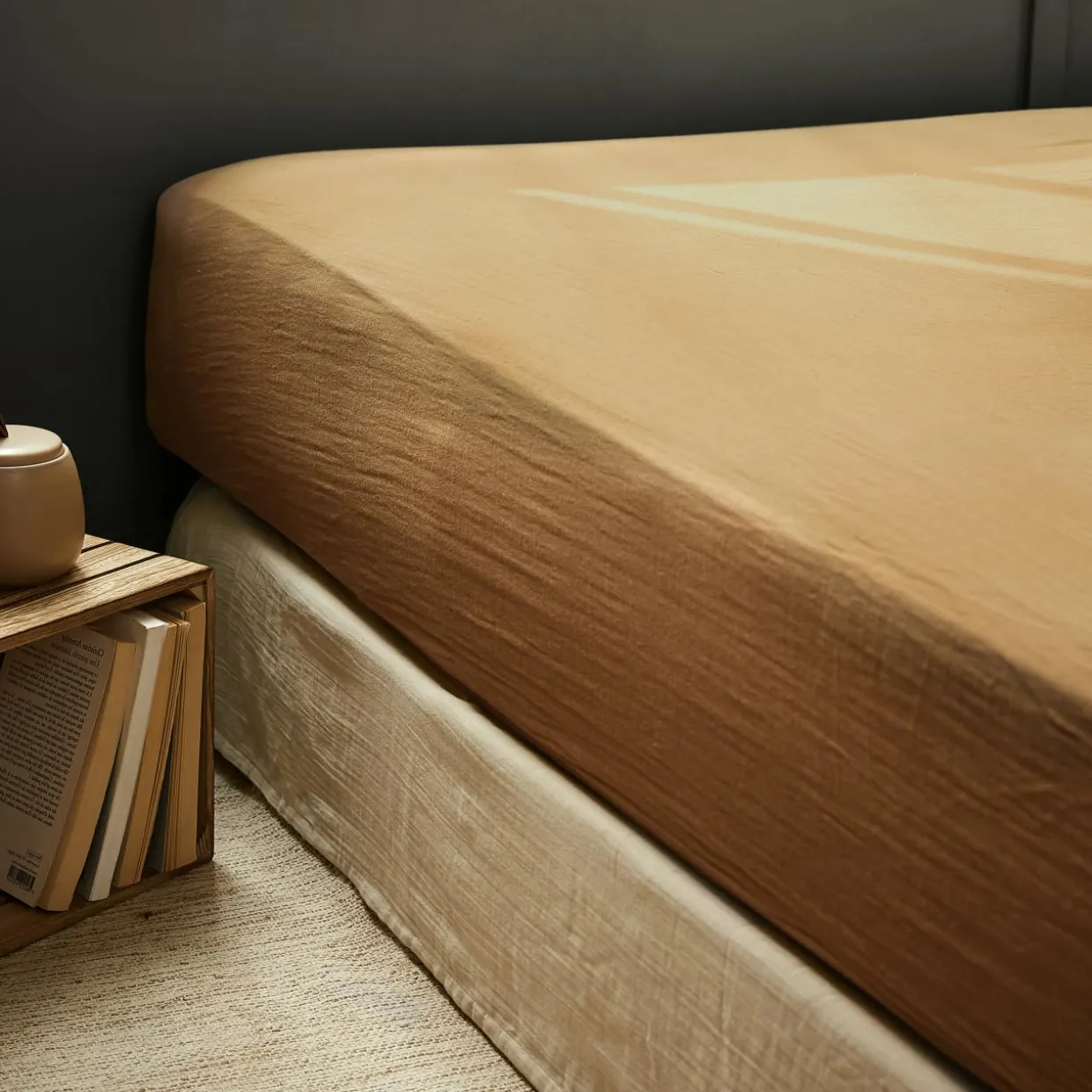 Drap housse gaze de coton (90 x 200 cm) Gaïa Camel