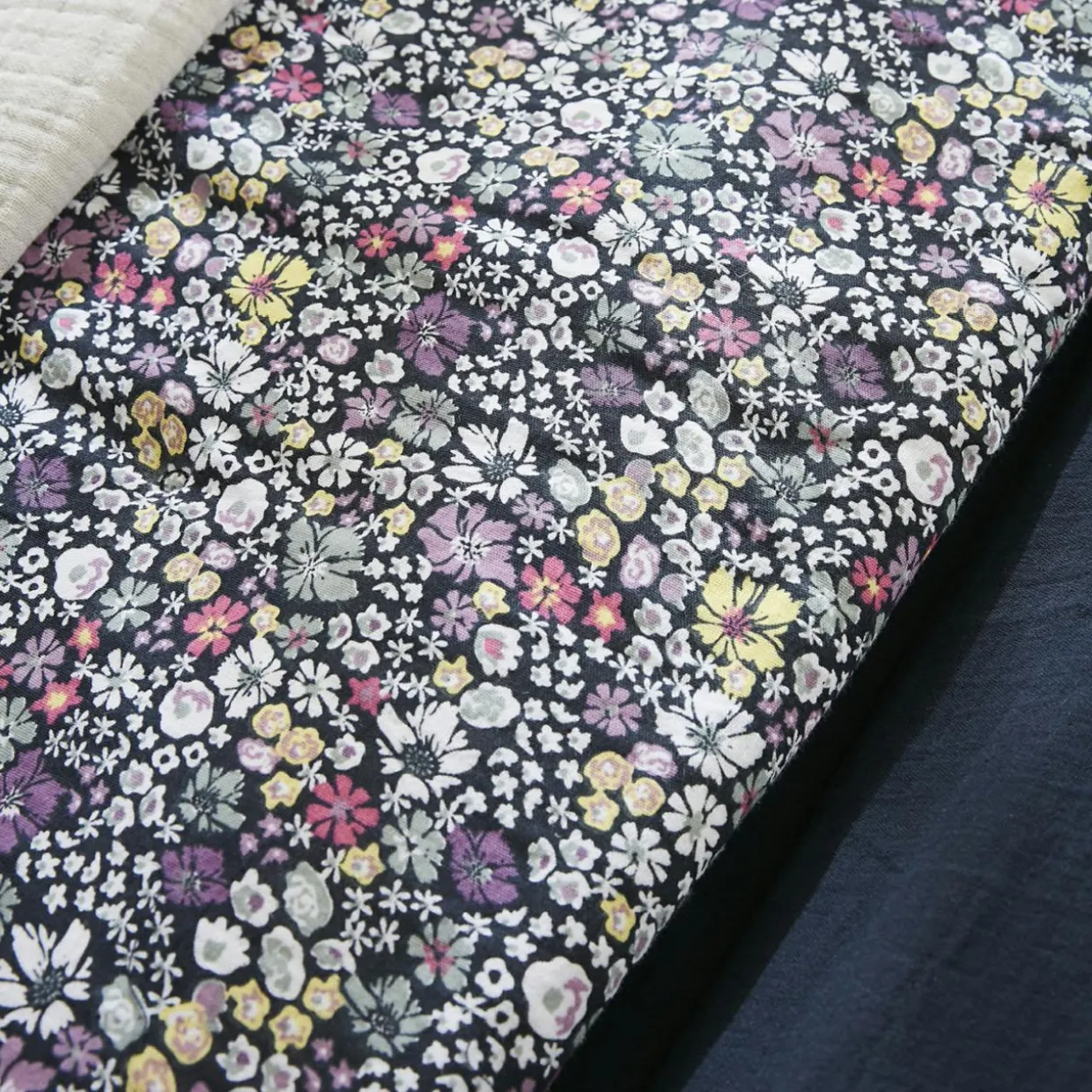 Les couleurs blanc, gris et bleu nuit feront parfaitement ressortir les motifs floraux.