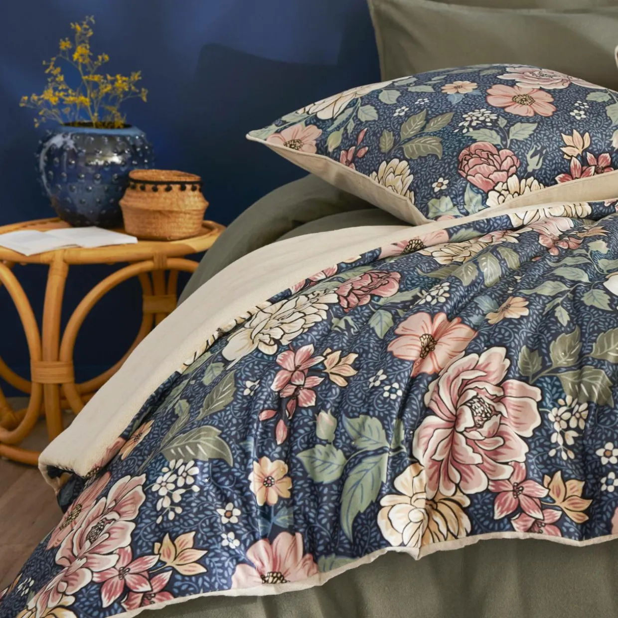 Imprimé : édredon à motif floral.