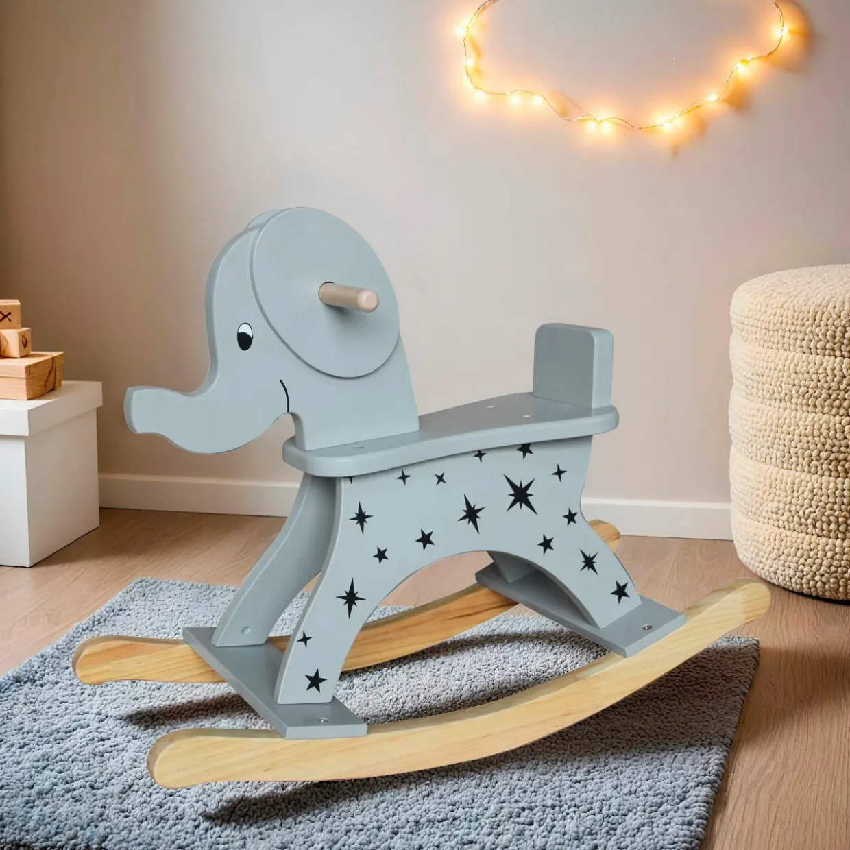 Cet éléphant à bascule en bois, de la collection Eminza Kids, offre un moment de jeu amusant et sécurisé pour votre enfant.