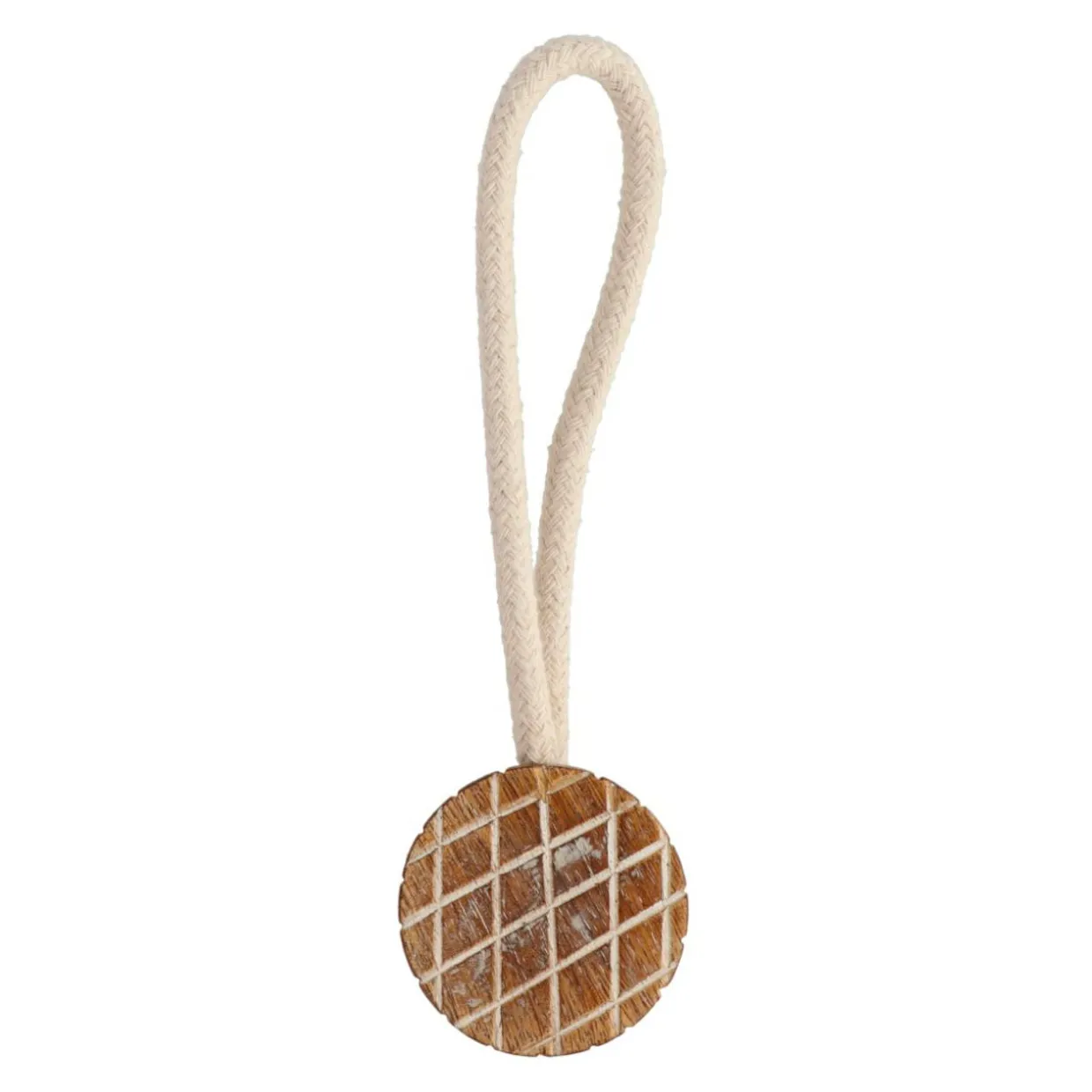 Cette embrasse de rideau en bois, issue de la gamme Africa, est à la fois décorative et fonctionnelle. Elle permet de maintenir vos rideaux ouverts sans avoir besoin de percer ou de visser. Son coloris beige s’intègre facilement à tout type de décoration.