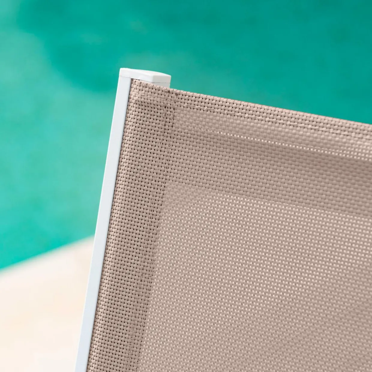 – Structure : aluminium traité époxy et accoudoir en bois Teck certifié FSC.