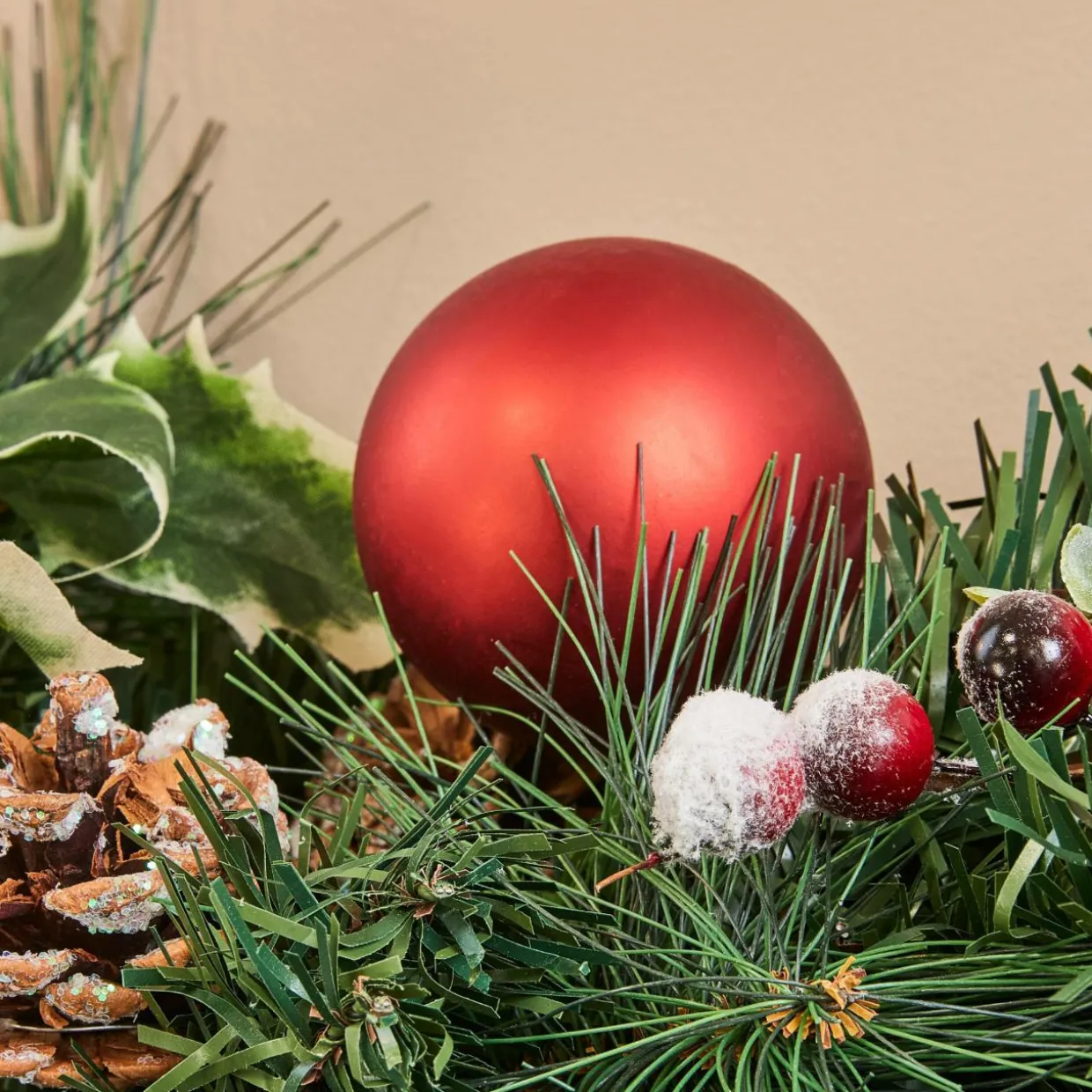 Matière : branches de sapin artificielles et boules de Noël en plastique.