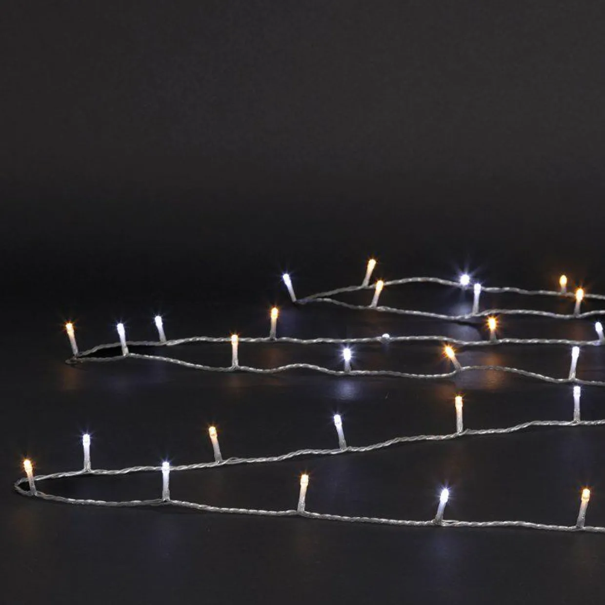 Mode de fonctionnement : ce produit est muni d’un minuteur lui permettant de s’allumer 8 heures par jour automatiquement. À brancher sur une prise (transfo IP44 fourni). Utilisation intérieure et extérieure. Cette guirlande est équipée de 8 jeux de lumière. Pour activer le timer 8h, il vous suffit d’apuyer 3 secondes sur le bouton jusqu’à ce qu’il devienne vert.