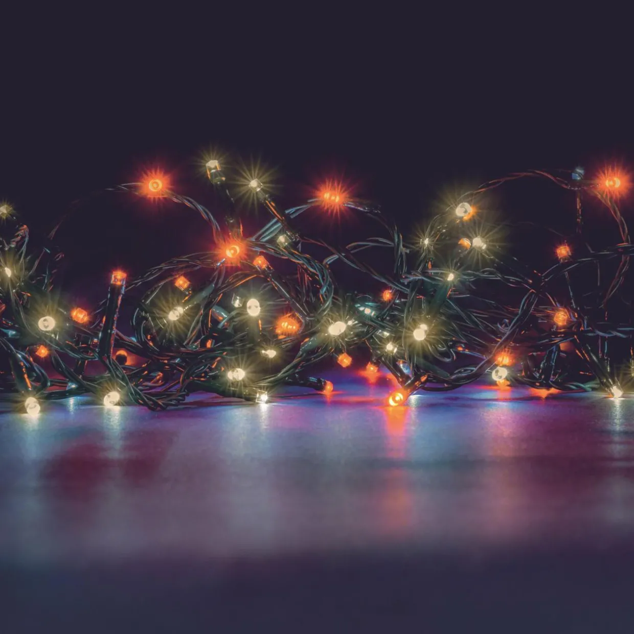 – Nombre de LED : 192. Cette guirlande est composée de 96 LED orange et 96 LED blanc chaud.