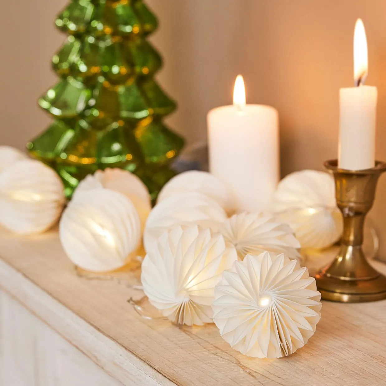 Cette guirlande lumineuse à LED illuminera votre intérieur avec une douce lueur de blanc chaud. Les lanternes en papier offrent une touche d’élégance et de douceur, idéale pour créer une ambiance cosy et chaleureuse lors des soirées d’hiver. Avec son minuteur intégré, elle s’allume automatiquement pour éclairer vos soirées pendant 6 heures.