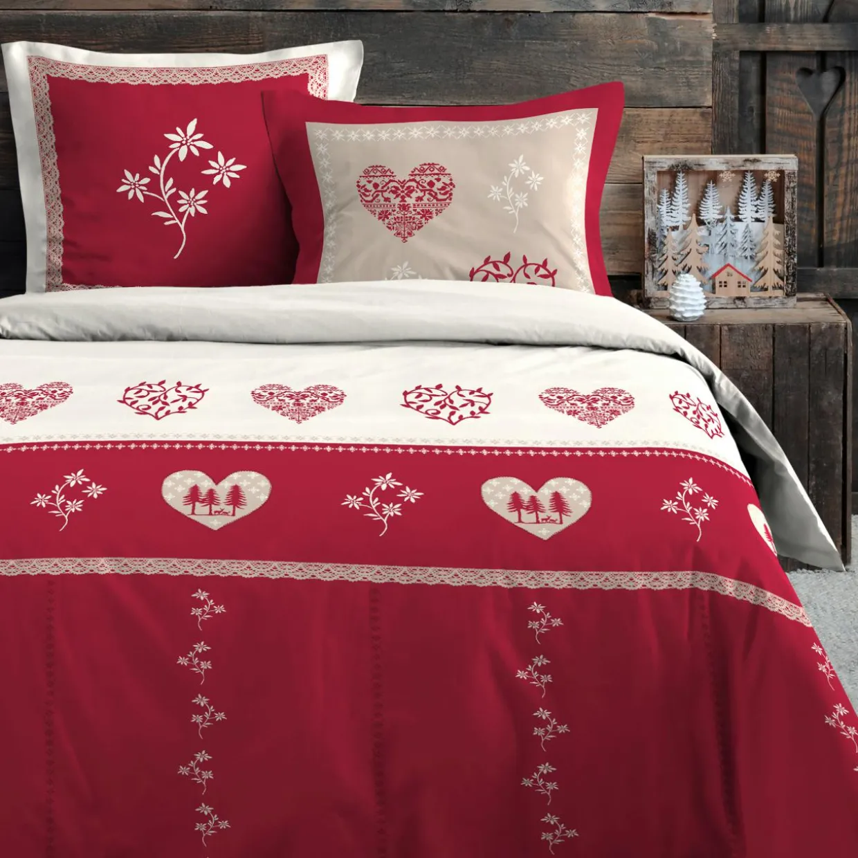 La parure de lit Modane, en coton doux et confortable, crée une ambiance chaleureuse et authentique dans votre chambre. Son design inspiré de l’univers montagnard allie tradition et modernité pour un charme unique.
