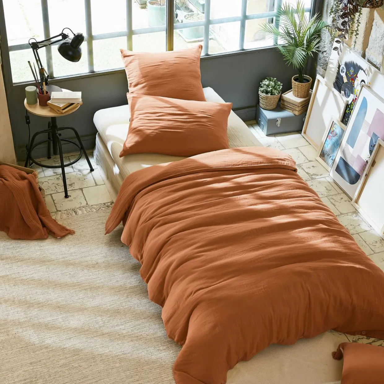 Housse de couette gaze de coton (140 x 200 cm) Gaïa Abricot