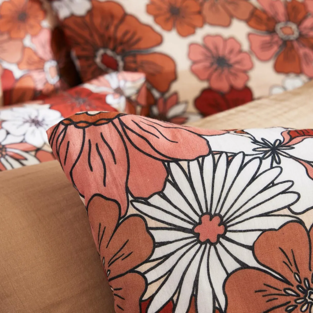 Housse de couette gaze de coton (260 x 240 cm) Gaïa azalée Terracotta