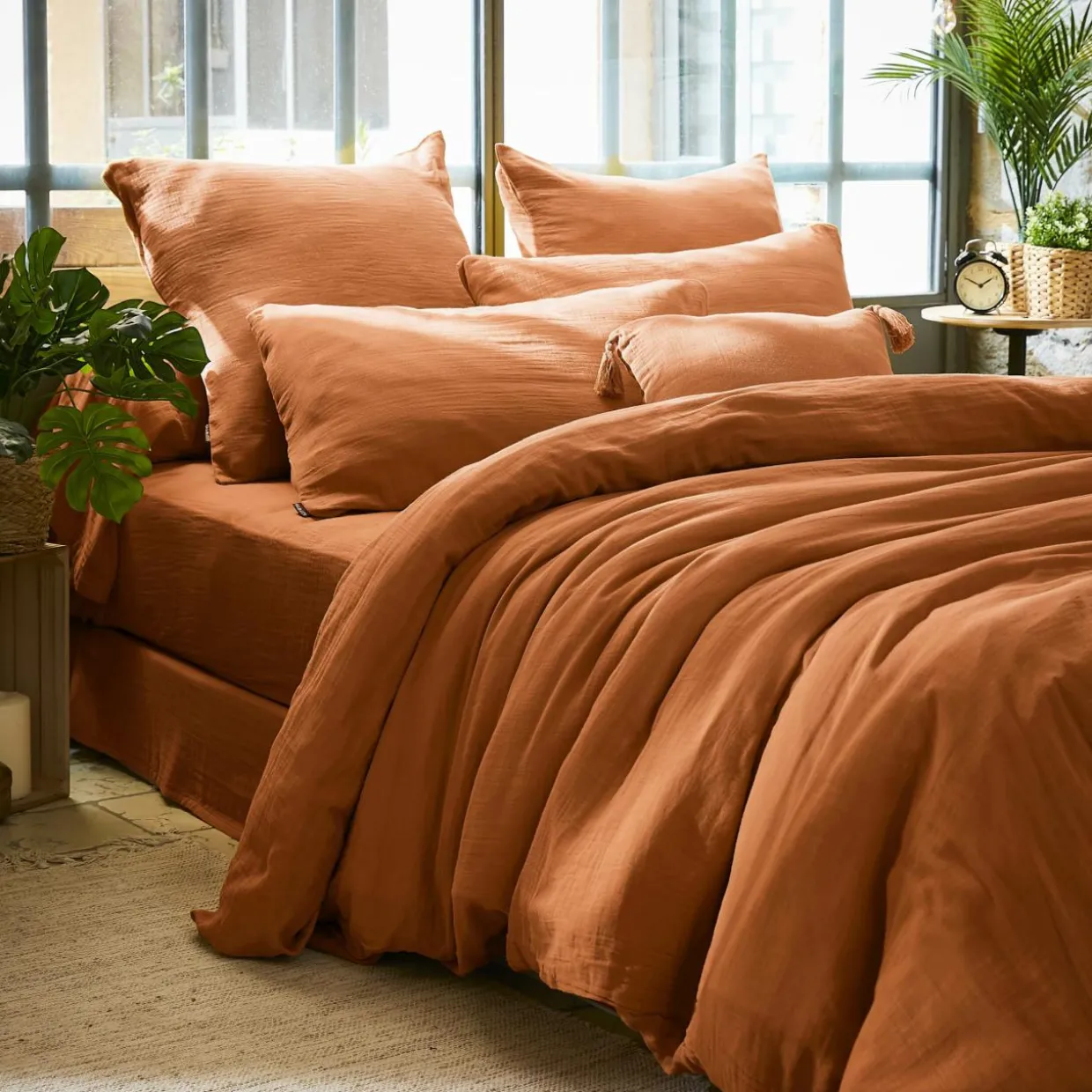 Housse de couette gaze de coton (280 x 240 cm) Gaïa Abricot