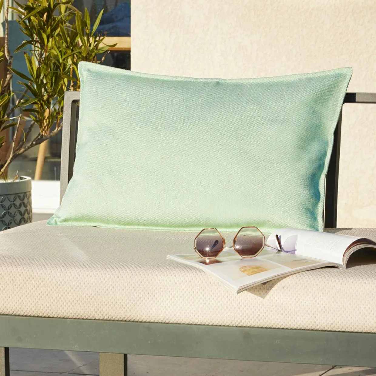 Housse de coussin extérieur rectangulaire (40 x 60 cm) Naia Vert caraïbes