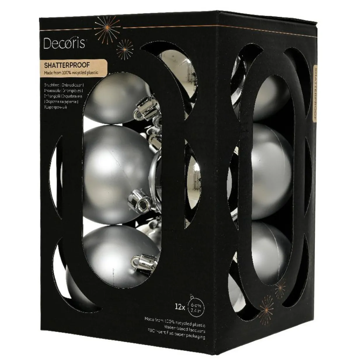 Informations complémentaires : lot de 12 boules de Noël. 6 boules brillantes et 6 boules mates. Suspension comprise, couleur de la suspension : argent. Emballage 100% recyclé certifié FSC.