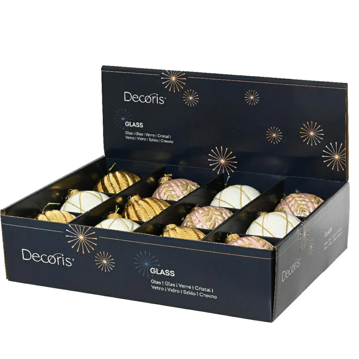 Informations complémentaires : lot de 12 boules avec suspension incluse de couleur or.