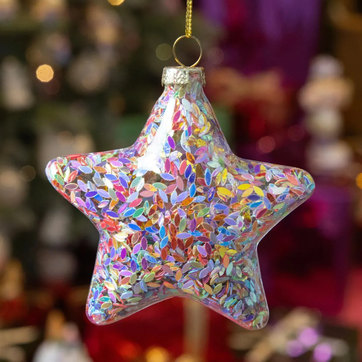 Père Noël à suspendre en métal (H12 cm) Étoile et pois Rouge