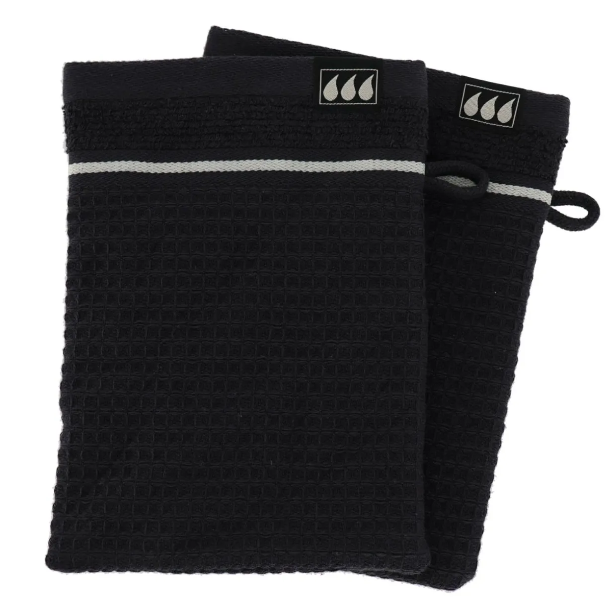 Lot de 2 gants de toilette coton nid d’abeille (15 x 21 cm) Japandi Noir