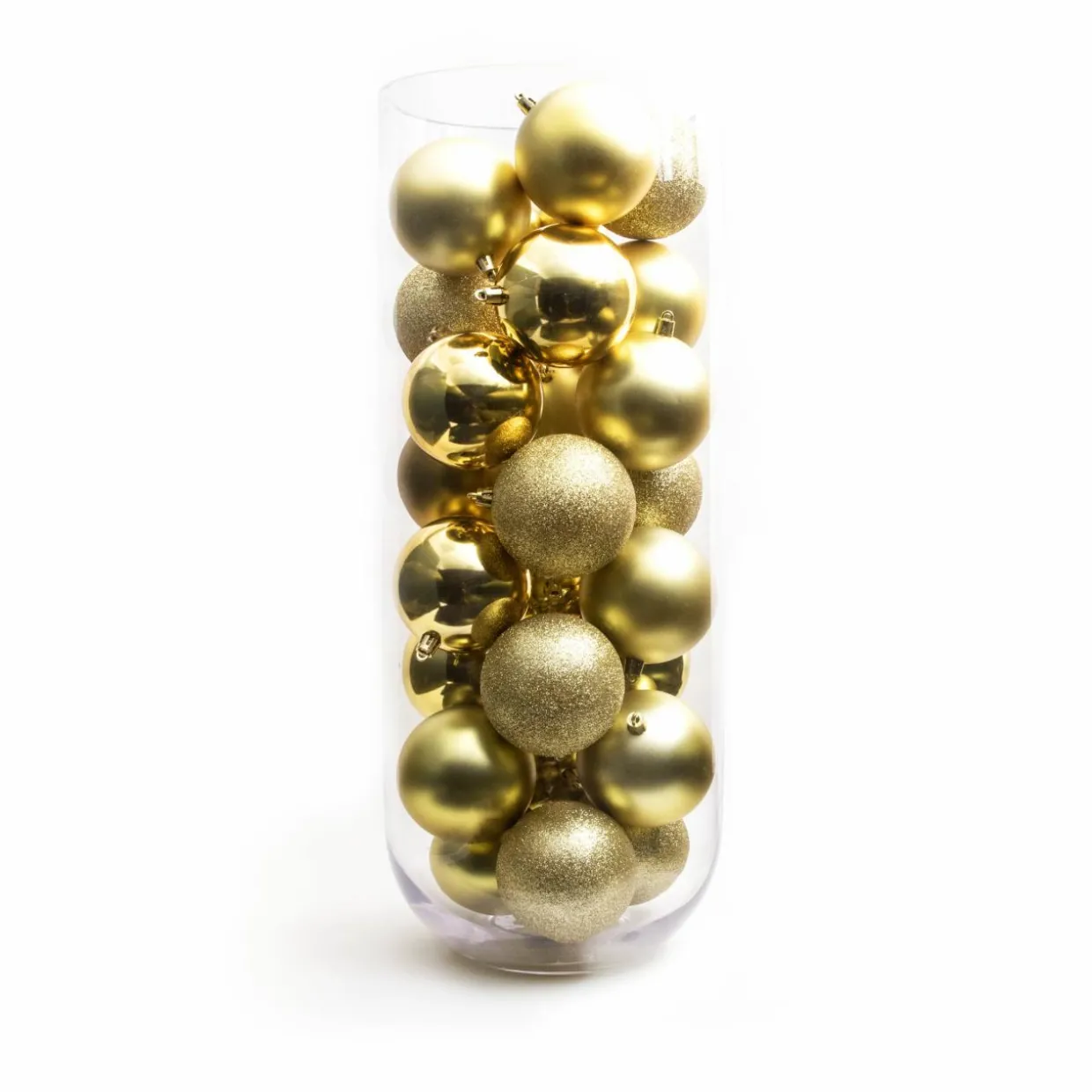 Composition du lot : mélange de boules brillantes, pailletées et mates.