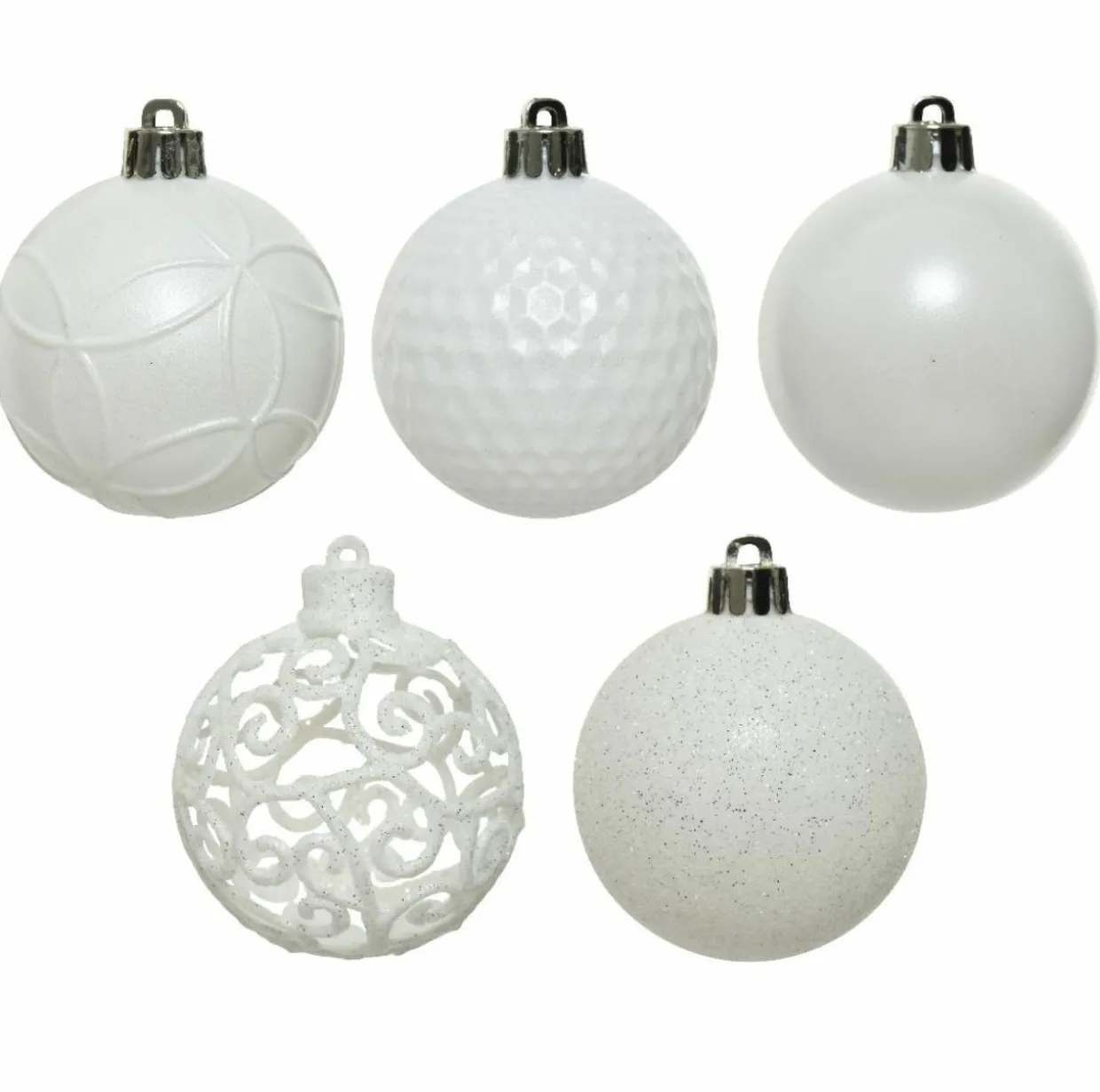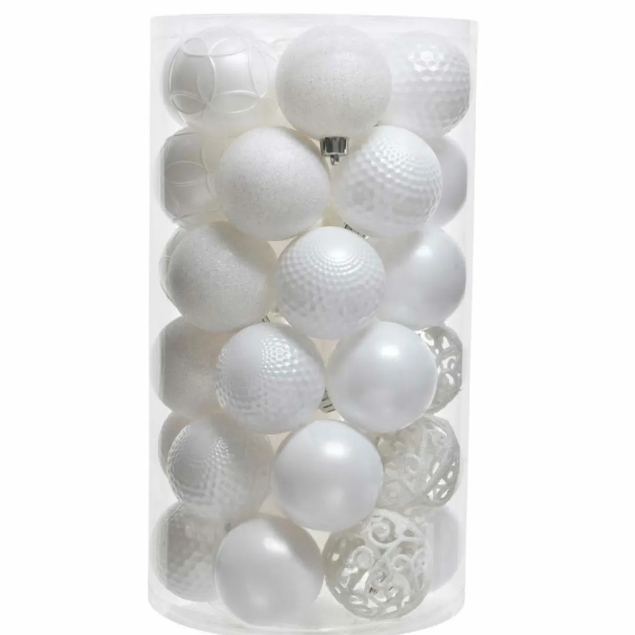 Composition du lot : 37 boules (D60 mm) : 19 boules brillantes, 12 boules pailletées et 6 boules mates