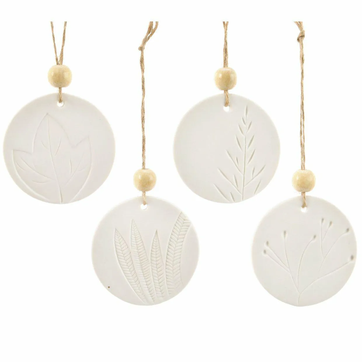 Suspension de fête (H12 cm) Rond Ours blanc et noeud en jute