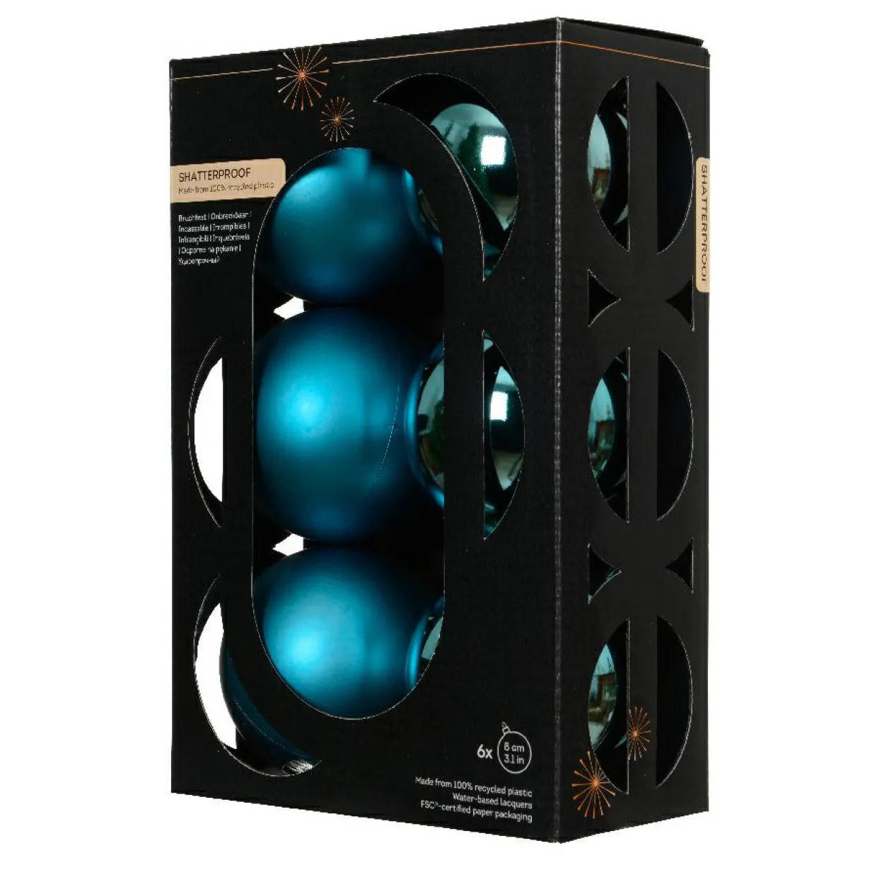Informations complémentaires : vendu en lot de 6 boules. Emballage 100% recyclé certifié FSC. Suspension comprise.