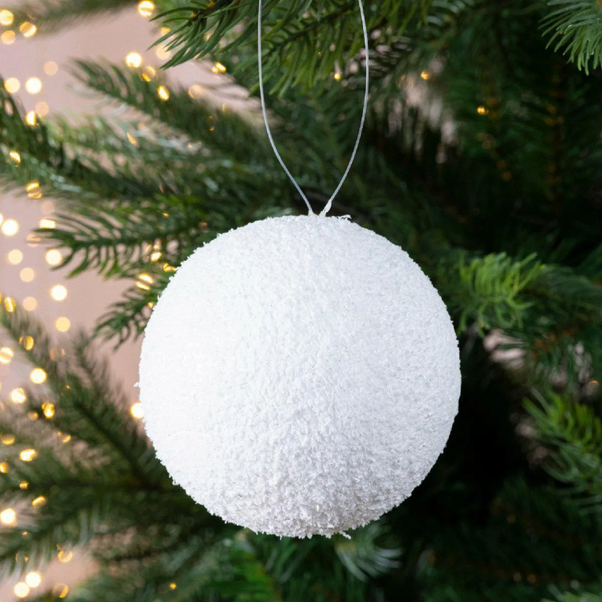 Suspension de fête (H12 cm) Rond Ours blanc et noeud en jute