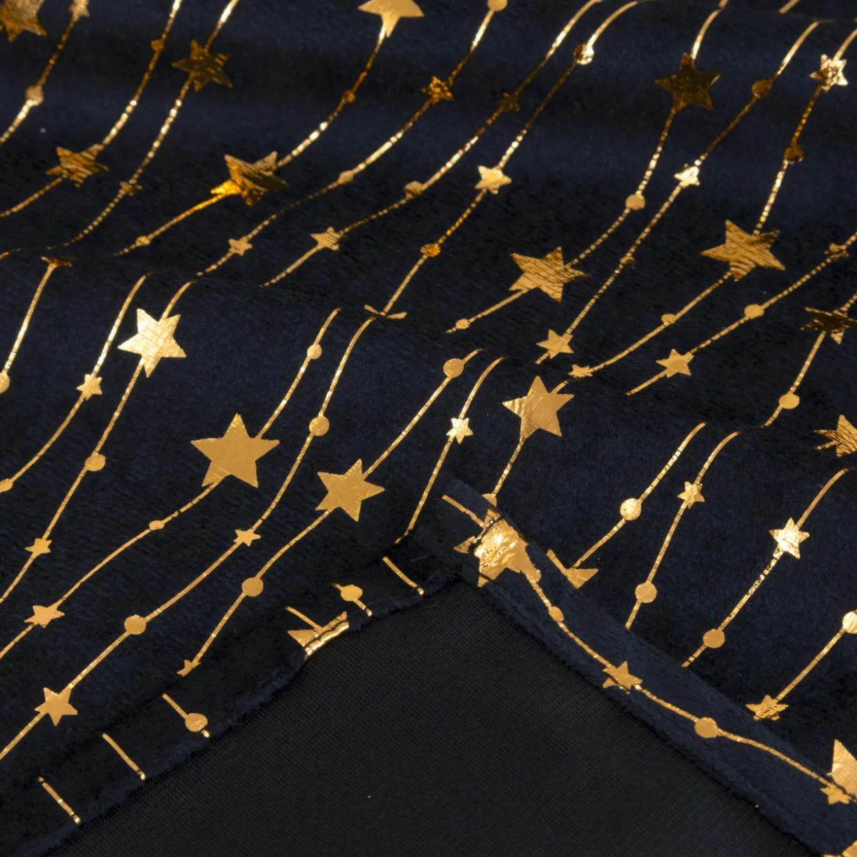Apportez une touche festive à votre table avec cette nappe de fête. Son motif doré sur fond noir crée une atmosphère élégante et sophistiquée, idéale pour célébrer la période de Noël.